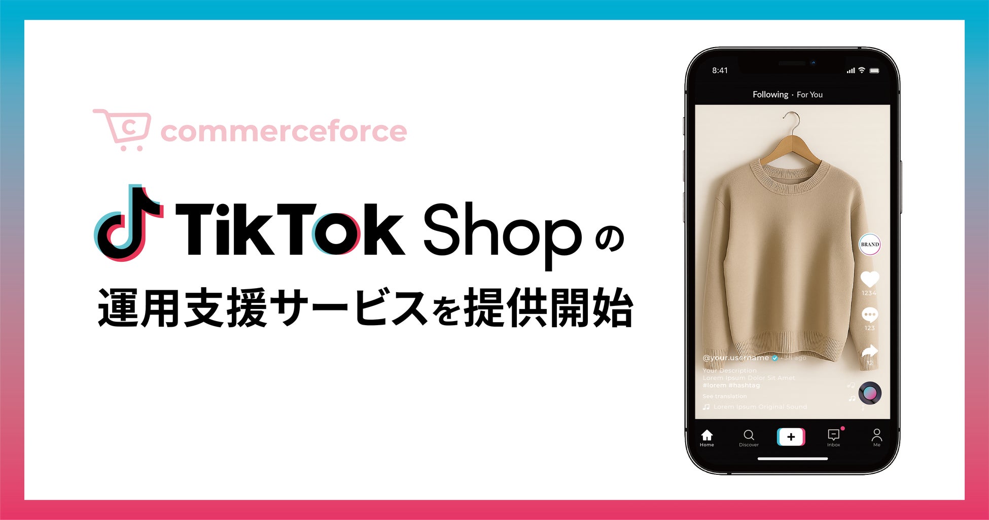 株式会社コマースフォース(本社:東京都中野区、代表取締役社長:小野瀬冬海、以下:コマースフォース)は、「TikTok Shop」への出店支援および運用代行サービスを新たに開始したことをお知らせいたします。