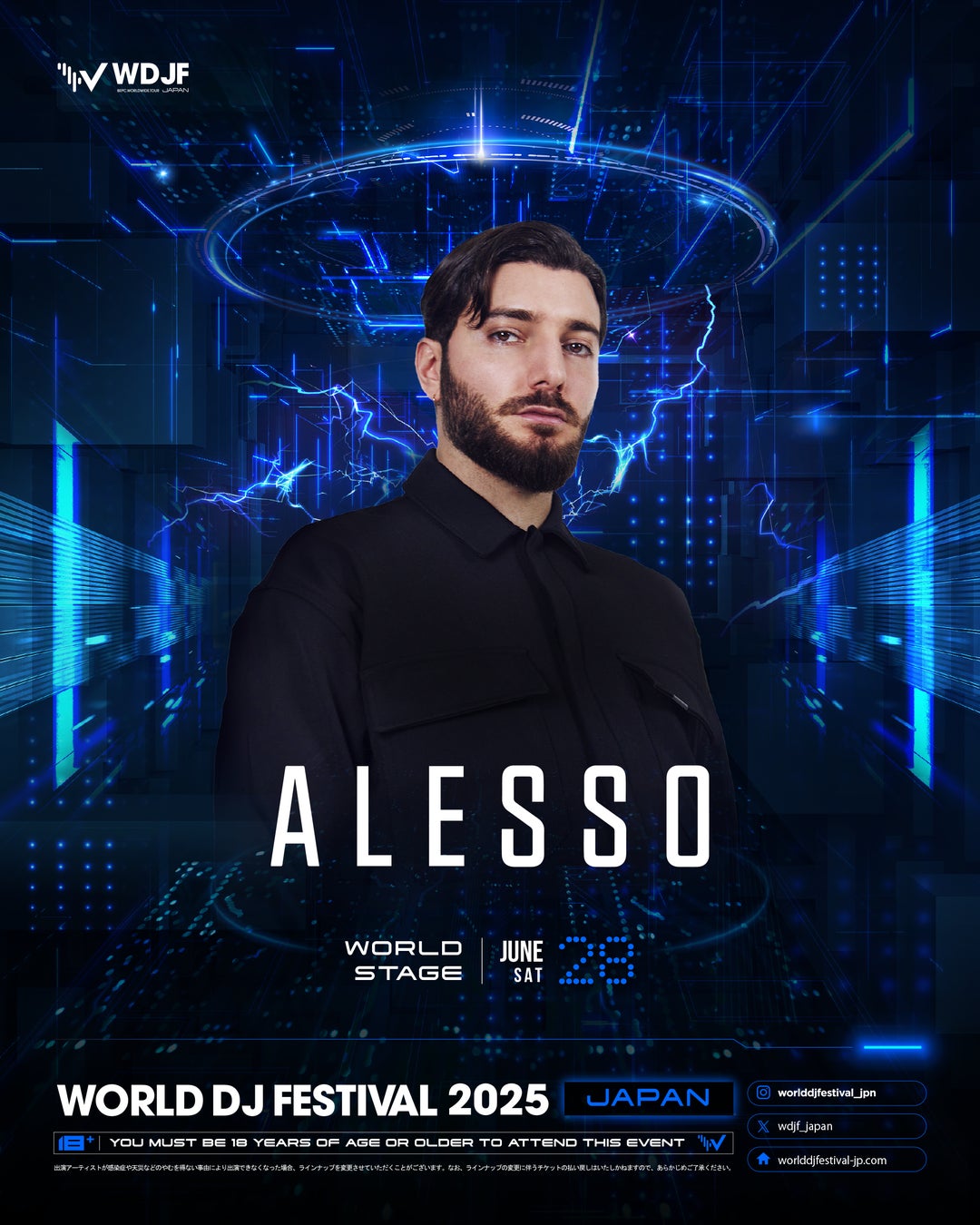 Alessoは「Heroes (We Could Be)」「Under Control」などの名曲で知られ、Coachella、Electric Daisy Carnival、Creamfields、Tomorrowlandなど世界最大級のフェスで圧倒的なパフォーマンスを披露。