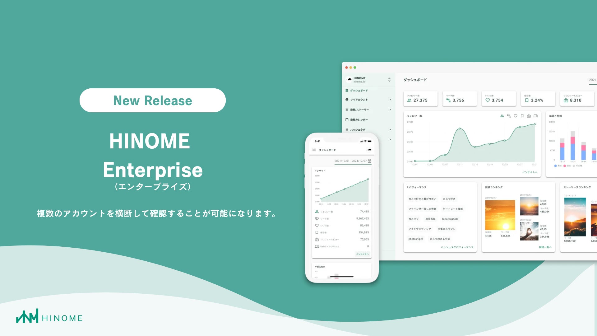 豊富な機能が利用可能なInstagram分析ツール『HINOME』を運営するHinome株式会社は、複数アカウント運用を横断して利用できる『HINOME Enterprise』をリリース。