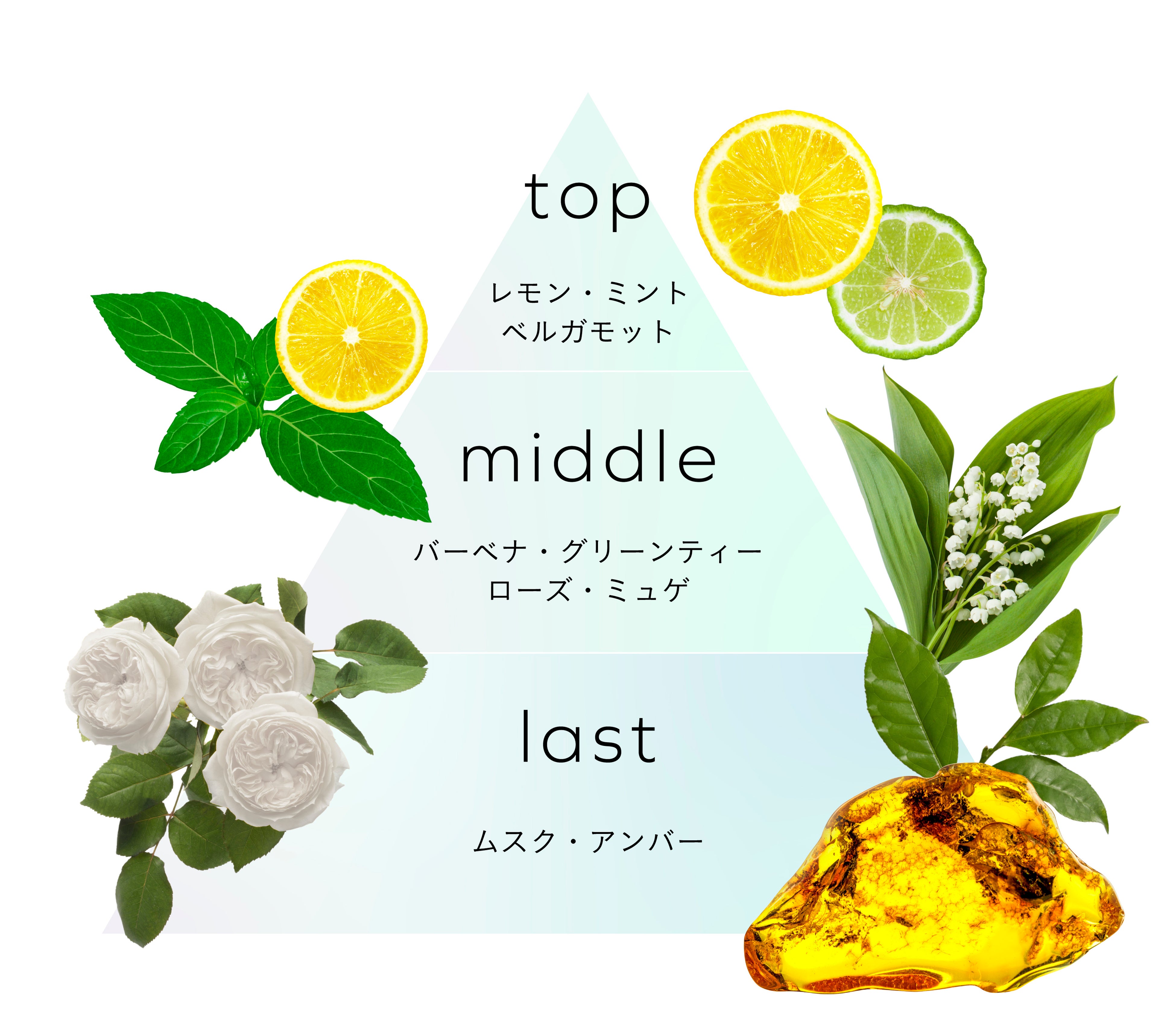 男女・年齢問わずにお使いいただけるさっぱりとした涼やかな香りをぜひお楽しみください。