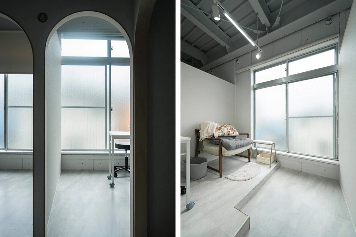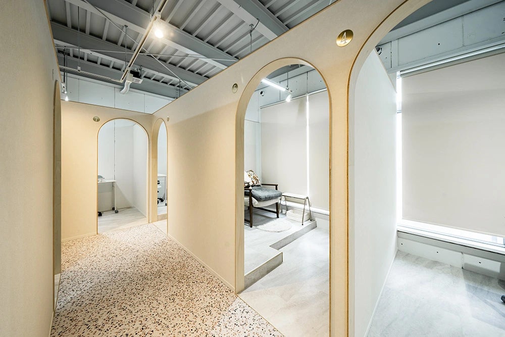 2Fの施術ブースはアーチ型の開口と自然光で心地よさを演出しています。