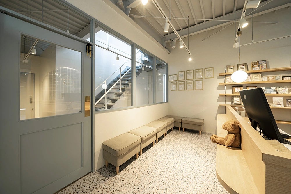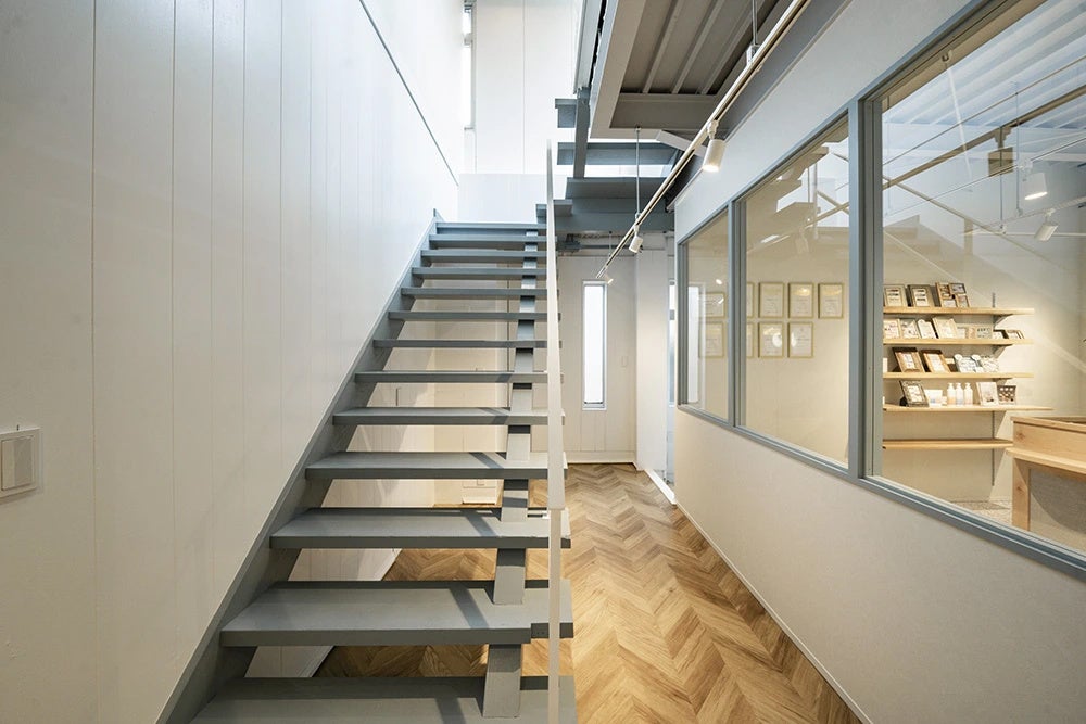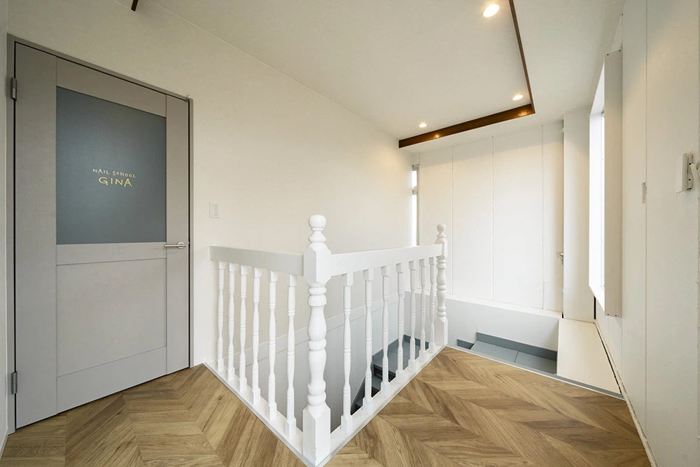 また、3Fには9室目のブースである、2人用の「ペアルーム」を設けており、サロンの最上階にある特別感のある快適な空間です。「人」が主役の店舗づくりという施主様のビジョンを形にしました。お客様はリラックスの中でネイルされた指先を見ながら笑顔が溢れ、ネイリストを夢見て成長していく生徒の方々は感動の時間が流れます。