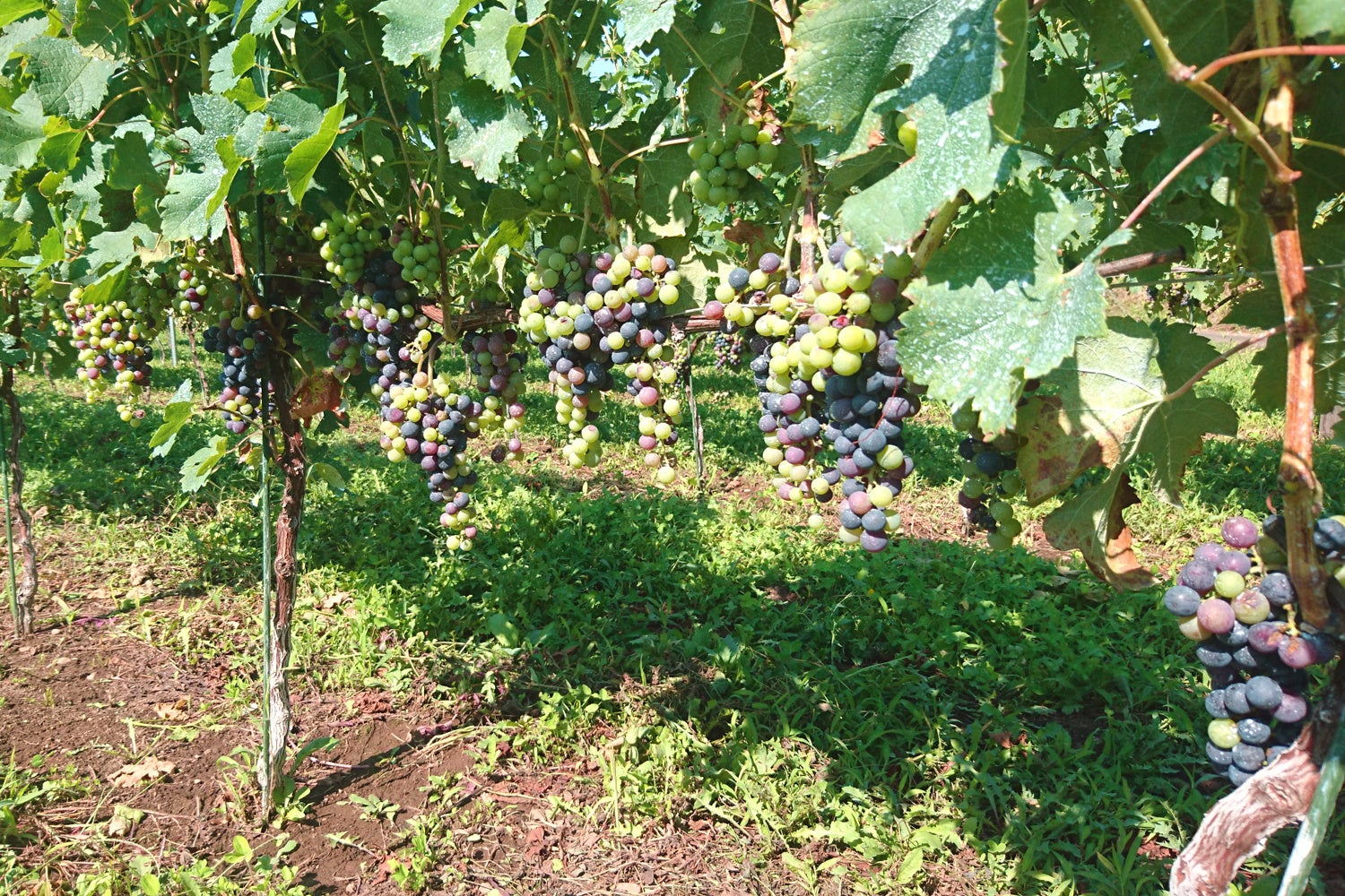 栽培においては、屋号の「グラン・ミュール(Grain Mûr)」の意味「熟した種粒」の通り、種まで綺麗に熟したぶどうの収穫を目指して、日々栽培管理を行っています。ワインになったとき、まずは舌に載せたときに甘味と旨味を感じるものになってほしいという願いがあるからです。酸味は少し後から感じるものであってほしいと思っています。化学肥料や除草剤は不使用。収穫の2週間前から畑で丁寧に選果をして、健全なぶどうだけを収穫するようにしています。