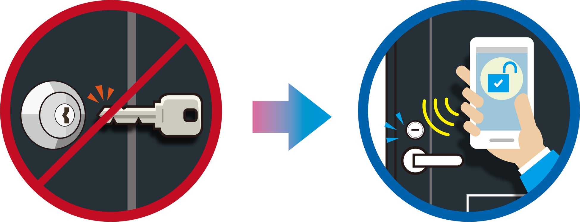 また、グループ会社による特許取得済みの技術により、アプリのインストールは不要で、直感的に操作可能なWebアプリ上からスムーズな入退室を実現します。入退室の記録はすべて「Smaview Cloud」にリアルタイムで連携され、管理者は誰がいつ出入りしたかを詳細に把握ができるため、鍵の管理負担を軽減しつつ、セキュリティ性の高い運用が可能です。