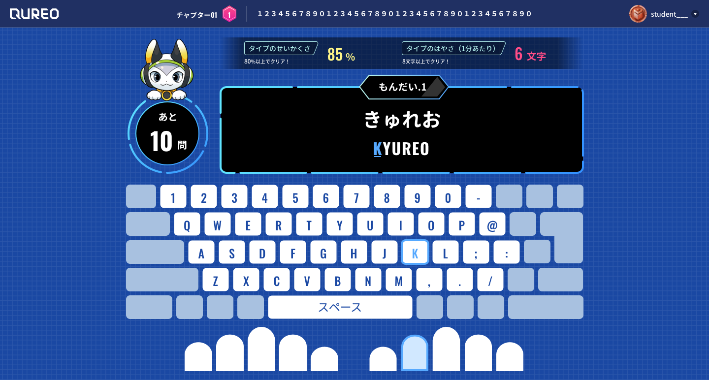 指のポジションの説明、アルファベット入力、ローマ字のひらがな入力までを学ぶことができます。