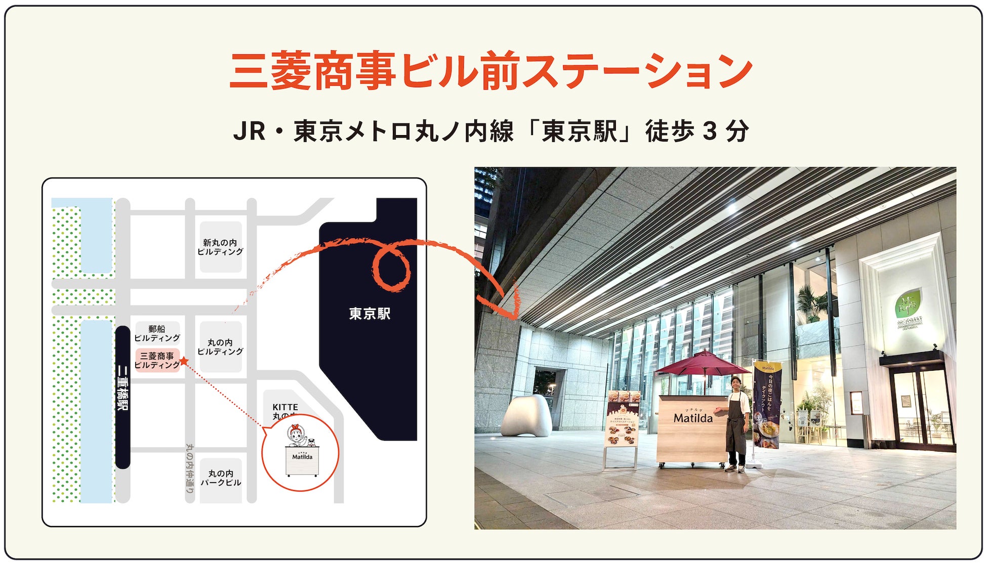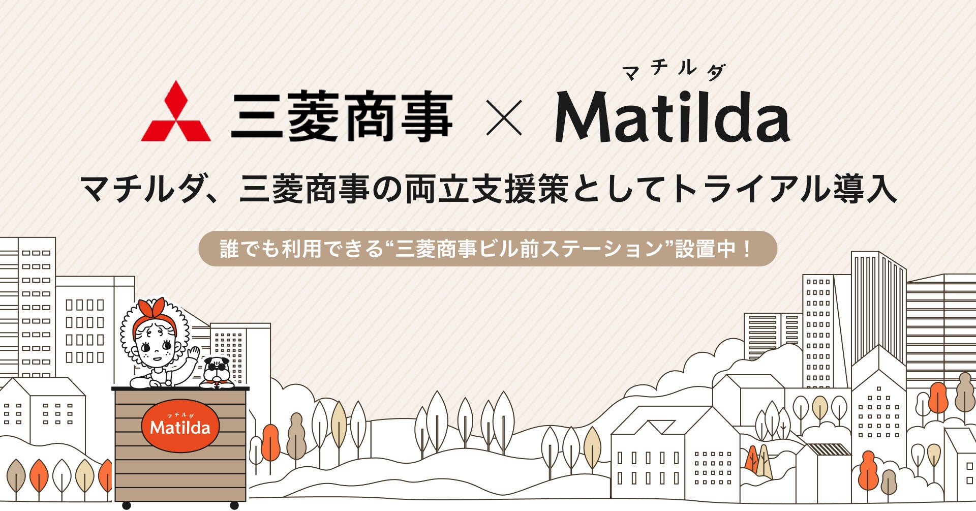「子どもが無邪気でいられる社会を創る」をミッションとする株式会社マチルダ(本社:東京都江東区、代表取締役:丸山由佳、以下 弊社)は、家庭料理のテイクアウトサービス「マチルダ」が、三菱商事株式会社(本社:東京都千代田区、代表取締役 社長:中西勝也、以下 三菱商事)の両立支援策の一環としてトライアル導入され、「三菱商事ビル前」ステーションを設置していることをお知らせいたします。
