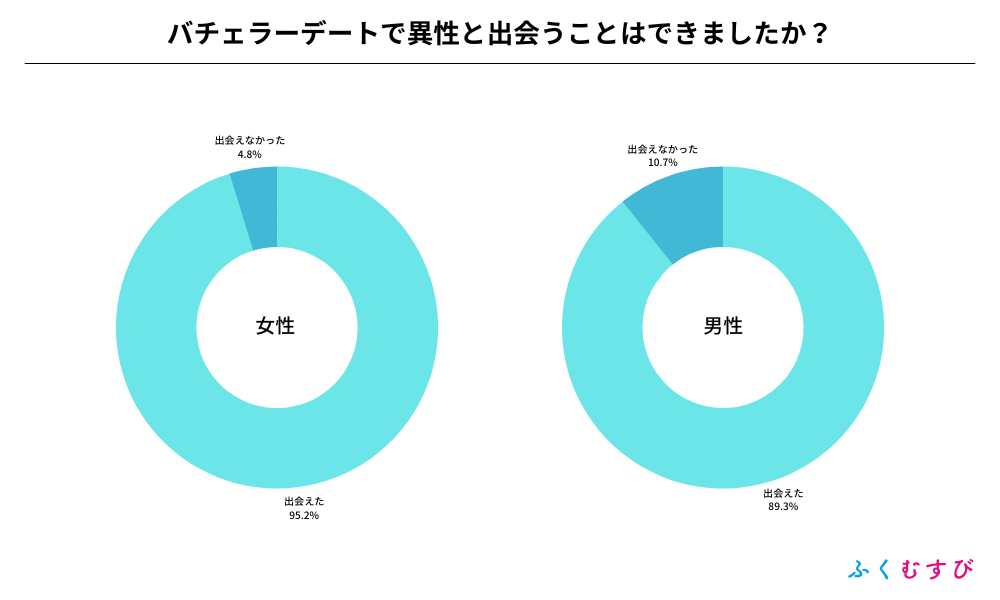 ・バチェラーデートで異性と出会えた割合は、男性が89.3%、女性が95.2%となりました。