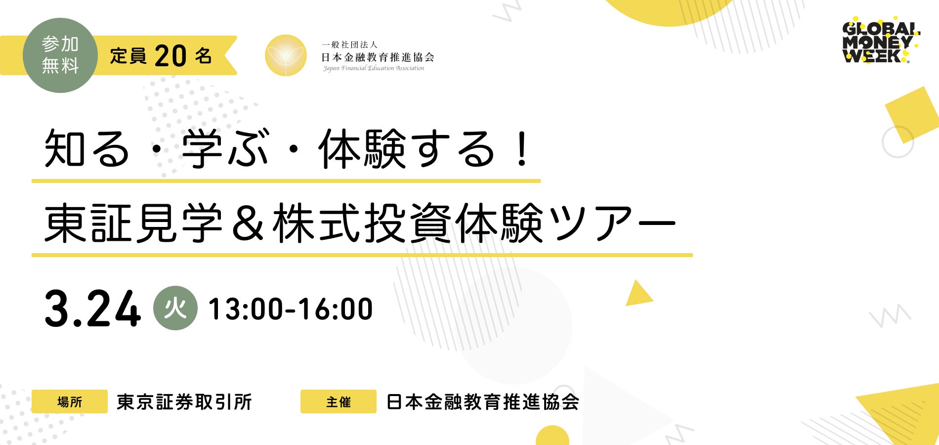 金融リテラシーの重要性が高まる中、東証見学や株式投資体験、おこづかいをテーマにしたセミナー、学生による情報発信プロジェクトを、3月24日〜25日に無料で実施します。