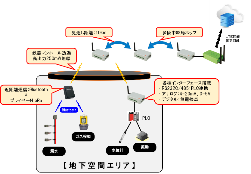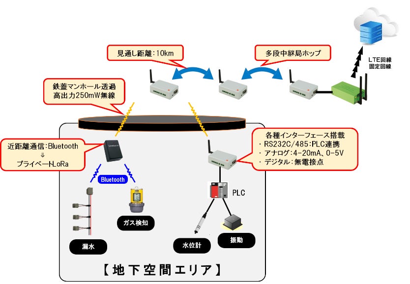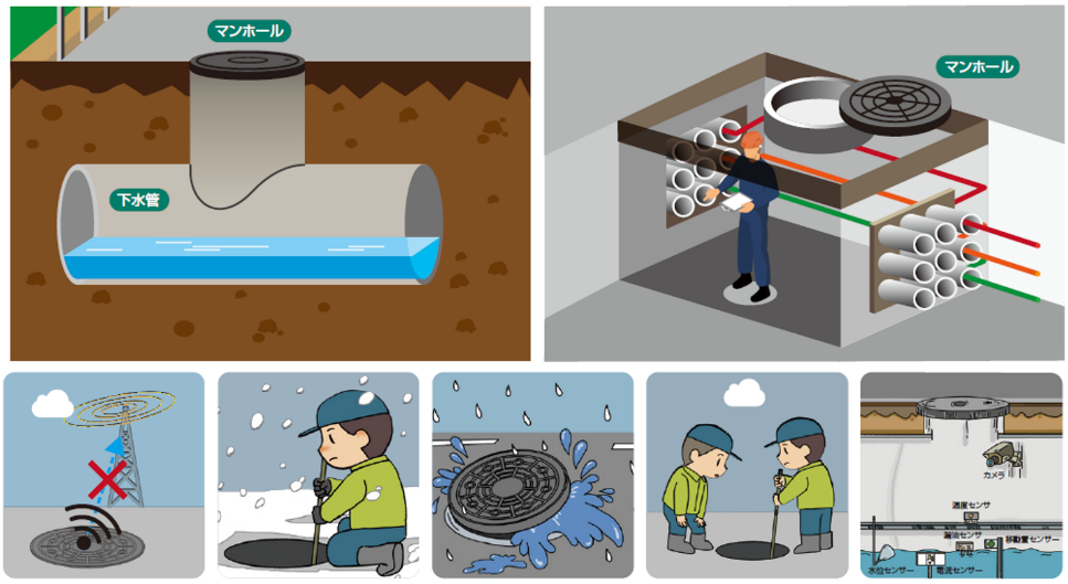 今回、頑丈な鉄蓋マンホールや機械室の鉄扉など閉ざされた地下空間では、データ通信が出来ない事情で様々な課題を抱え、今後の“アナログ規制の見直し”や“少子高齢化に伴う人手不足”の動向から、人手に頼っている作業をDX(デジタルトランスフォーメーション)活用への転換が必要不可欠となります。これらの改善を目的として各種センサー(データ収集)と高出力LPWA無線(データ通信)を組み合わた「センサーIoTサービス:SR-APPEAR」を現場導入して点検作業の改善・有義性を確認いたしました。