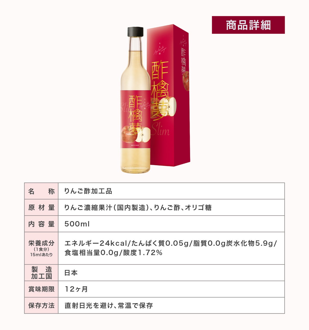 酢檎夢は、りんご酢に含まれる 酢酸・オリゴ糖・りんごポリフェノール の力を活かし、「毎日1杯」から始められる“発酵習慣”として位置づけられています。