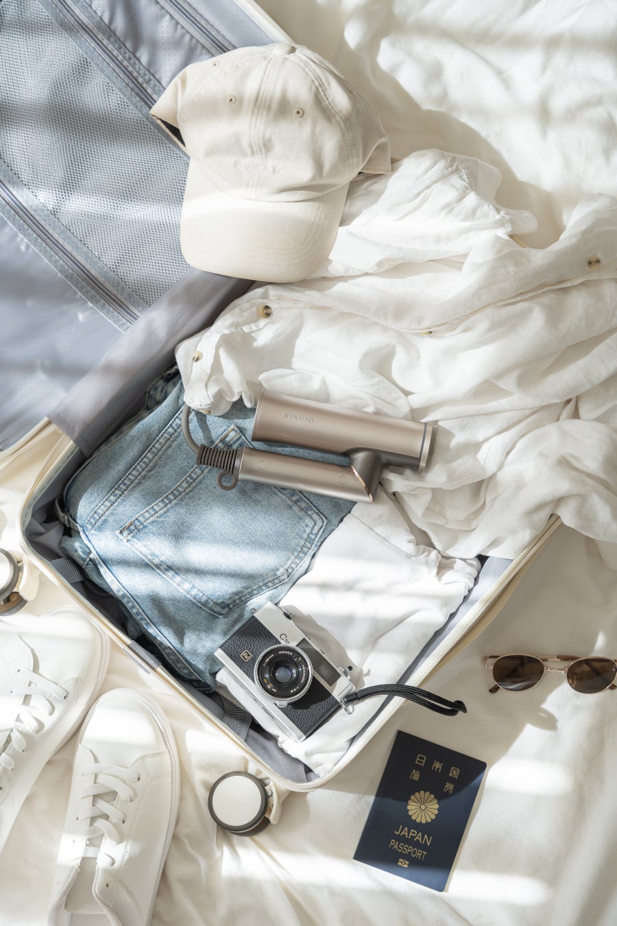 海外滞在時はホテルのドライヤーの風量が弱い、いつも通りの髪型が決まらないなど悩みがつきものですが、「KINUJO Hair Dryer Voyage」があればどんな場所でもいつもの美しさをそのままに、理想のコンディションで過ごせます。