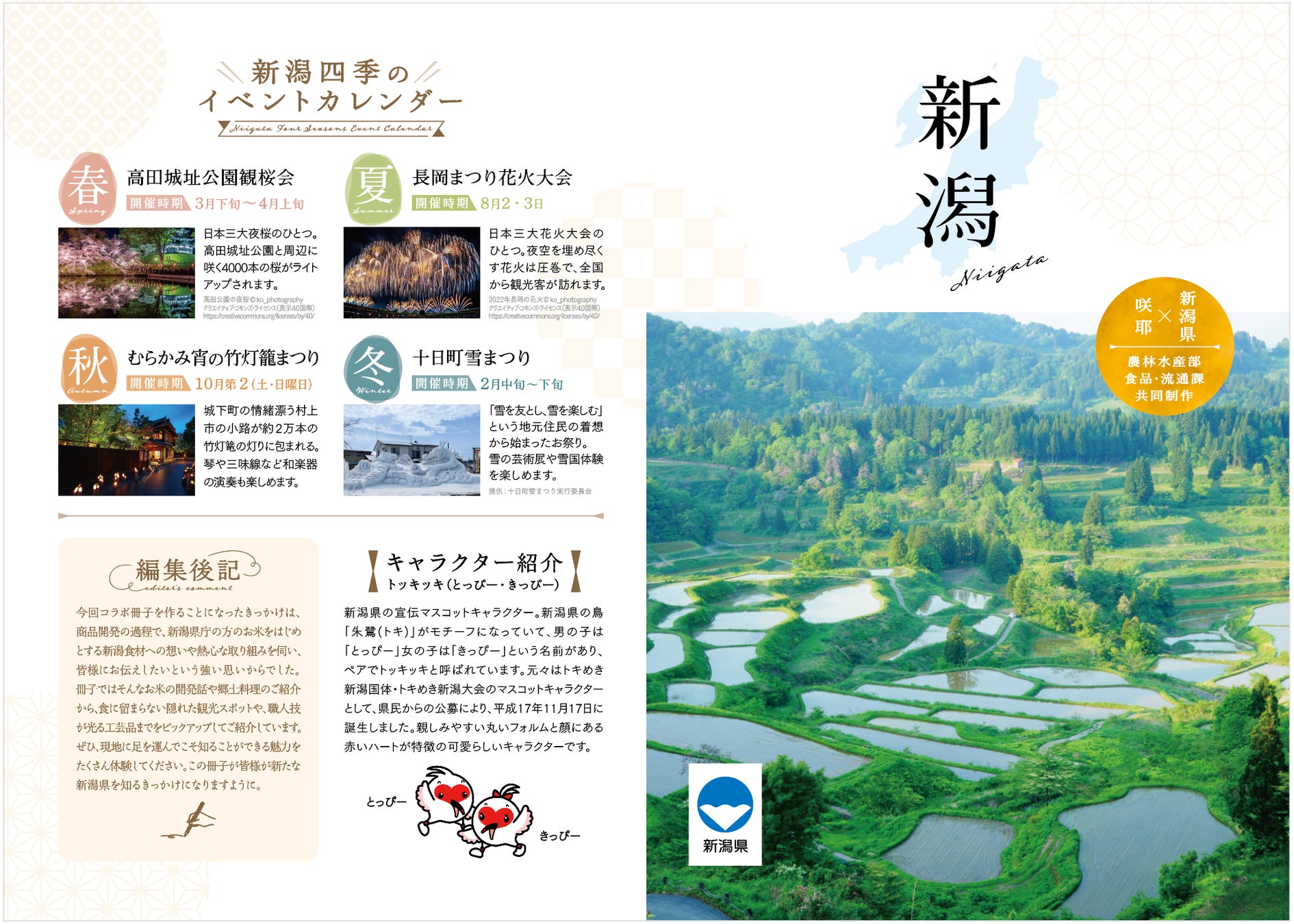 新潟県農林水産部食品・流通課と共同制作した冊子も同梱いたします。