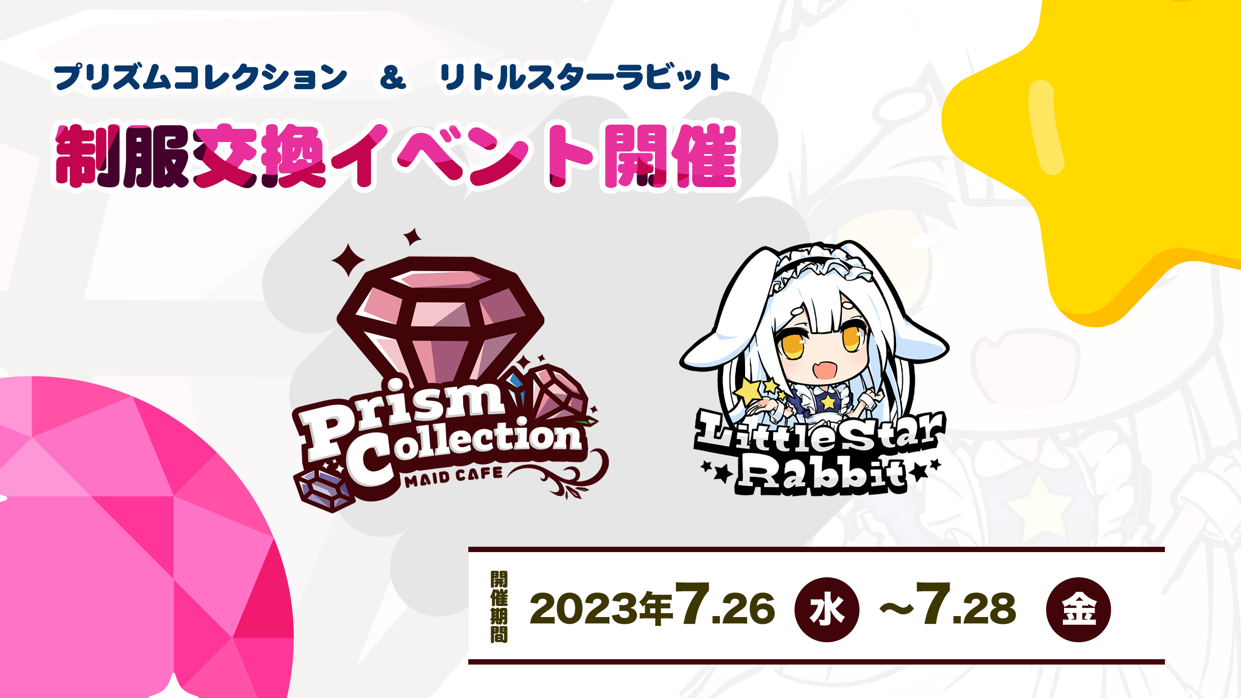 秋葉原、宝石をコンセプトにした「プリズムコレクション」と、星とうさぎをコンセプトにした「 リトルスターラビット」はグループの垣根を超えた制服交換コラボイベントを7月26日(水)より開催いたします。