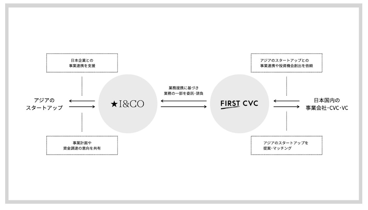 このたびの提携により、日本最大のCVC・スタートアップコミュニティを運営するFIRST CVCと、アジアのスタートアップに良質なネットワークを有するI&COがそれぞれの強みを掛け合わせ、情報の非対称性やネットワークの分断を解消しながら、日本企業とアジアのスタートアップとの事業連携や、双方向の進出支援を強化します。