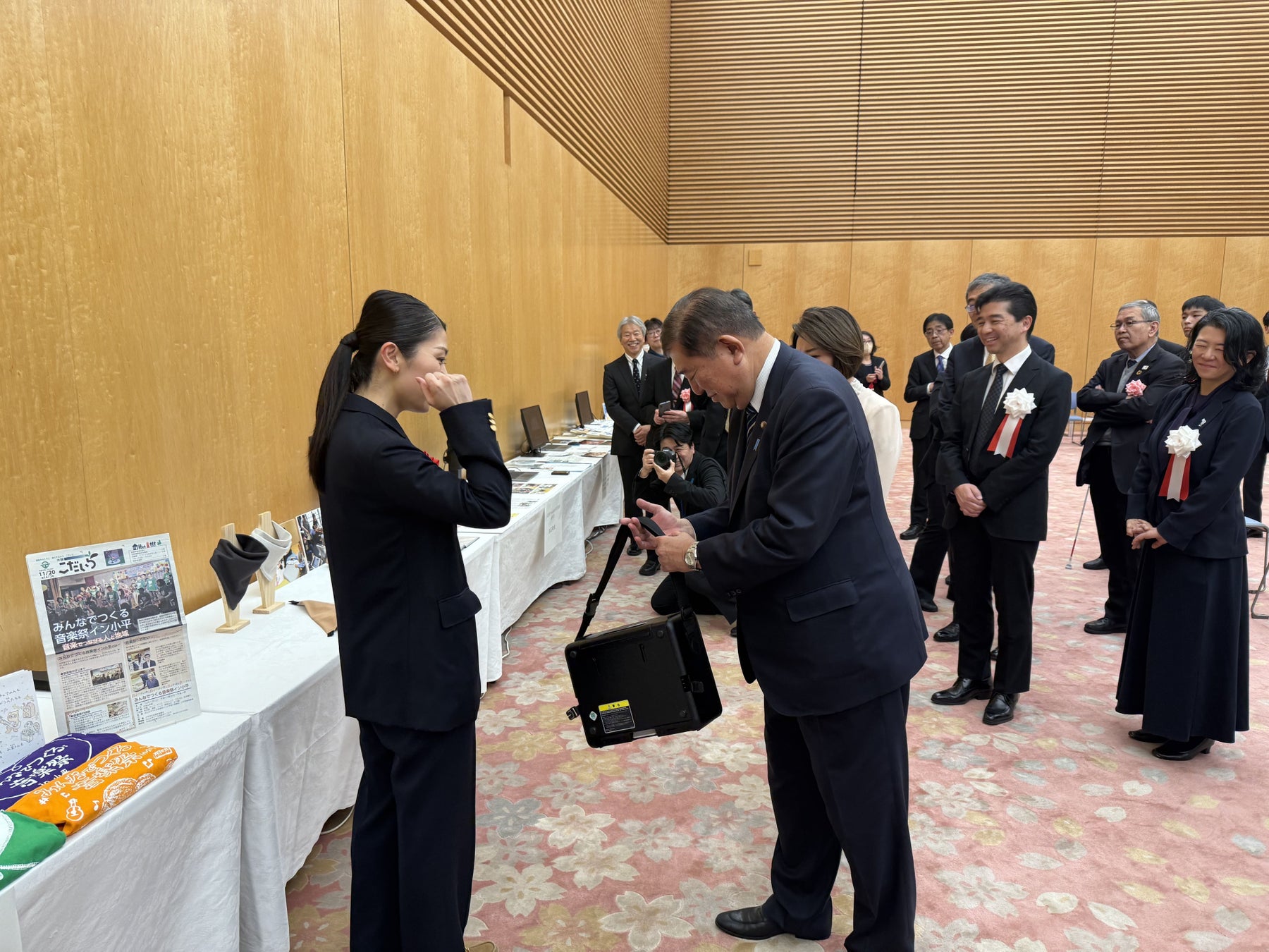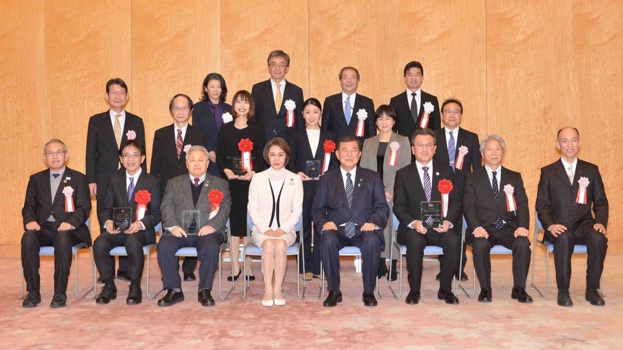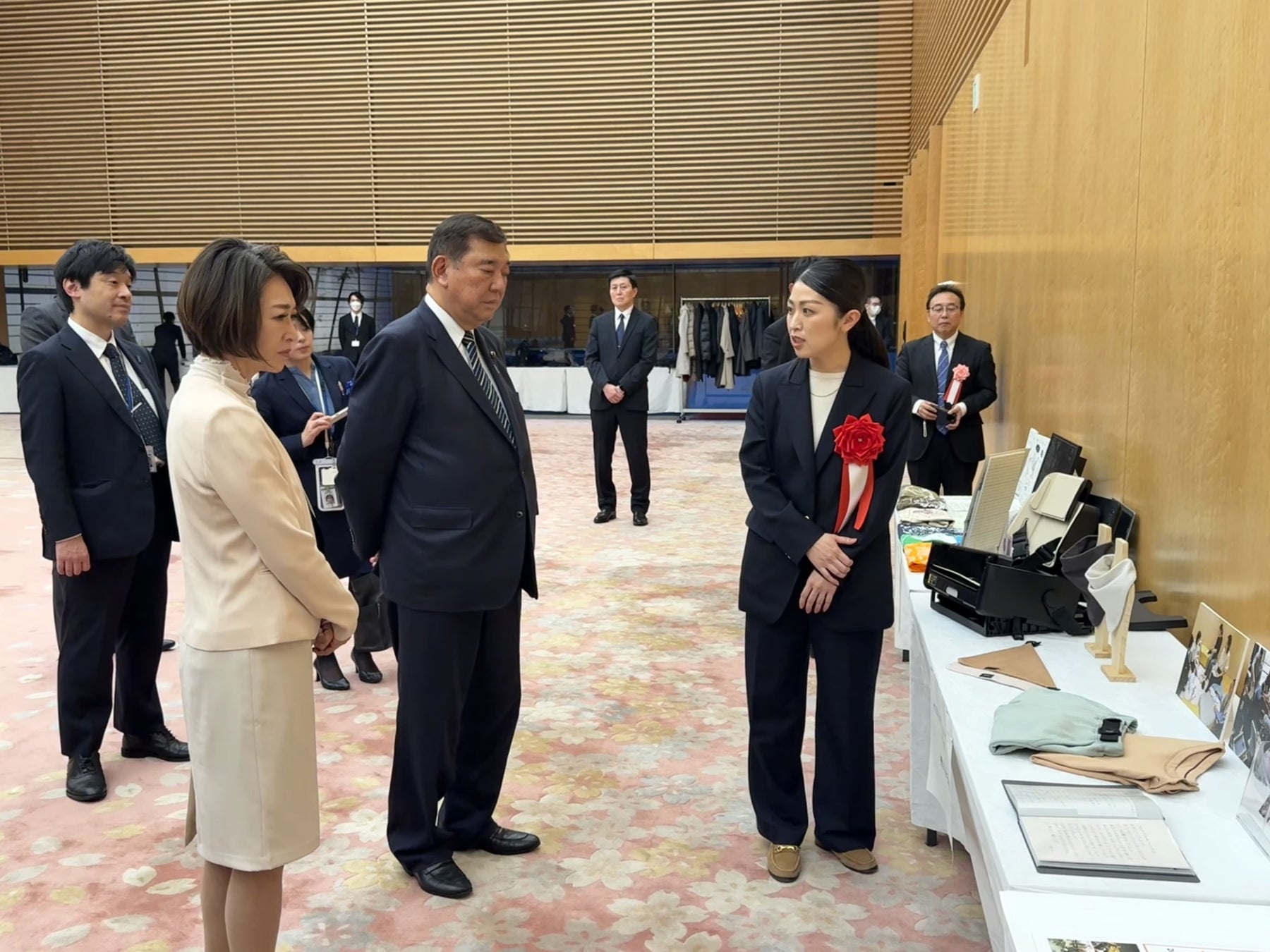 2024年12月27日に内閣総理大臣官邸で開かれた表彰式には、代表の松本が出席いたしました。石破茂首相や三原じゅん子内閣府特命担当大臣に、これまで開発・販売してきた「IKOU(イコウ)ポータブルチェア」や「IKOU Bib」等のプロダクトを実際にご覧いただき、激励のお言葉をいただきました。
