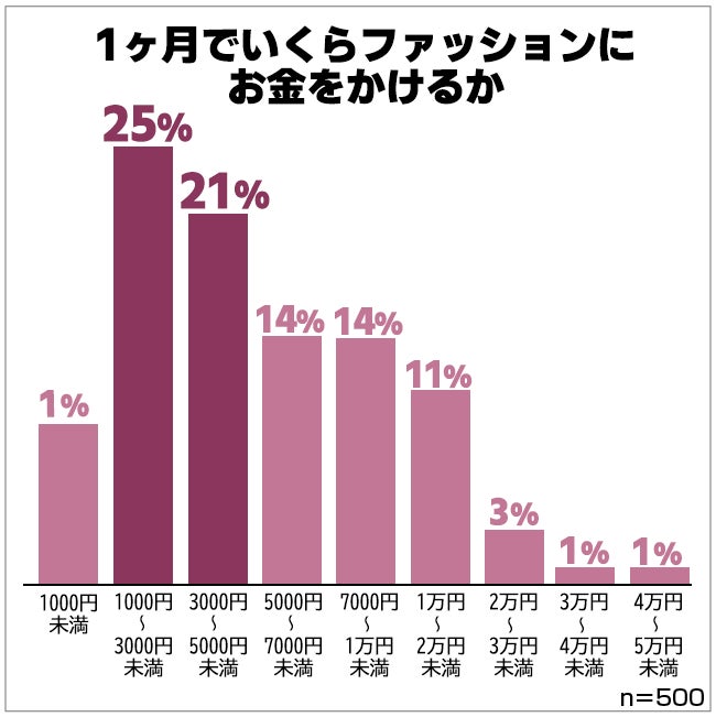 ファッションにかけるお金は毎月いくら?女性500人アンケート調査結果。3,000円未満が最も多く年々減少するアパレル消費をあらわす結果に