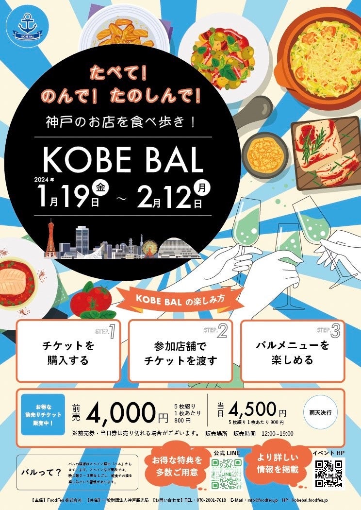 FoodFes株式会社(代表取締役:稲垣一馬)は一般財団法人神戸観光局と共催で、2024年1月19日(金)から2月12日(月)の25日間、神戸市内で「KOBE BAL」を開催します。