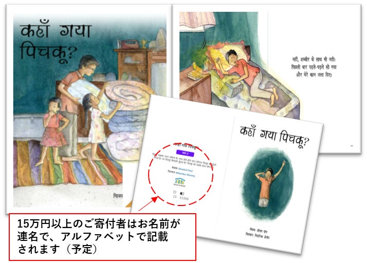 なお、個人またはグループで15万円(US$1,000)以上のご寄付者は、絵本に連名でお名前を記載いたします。