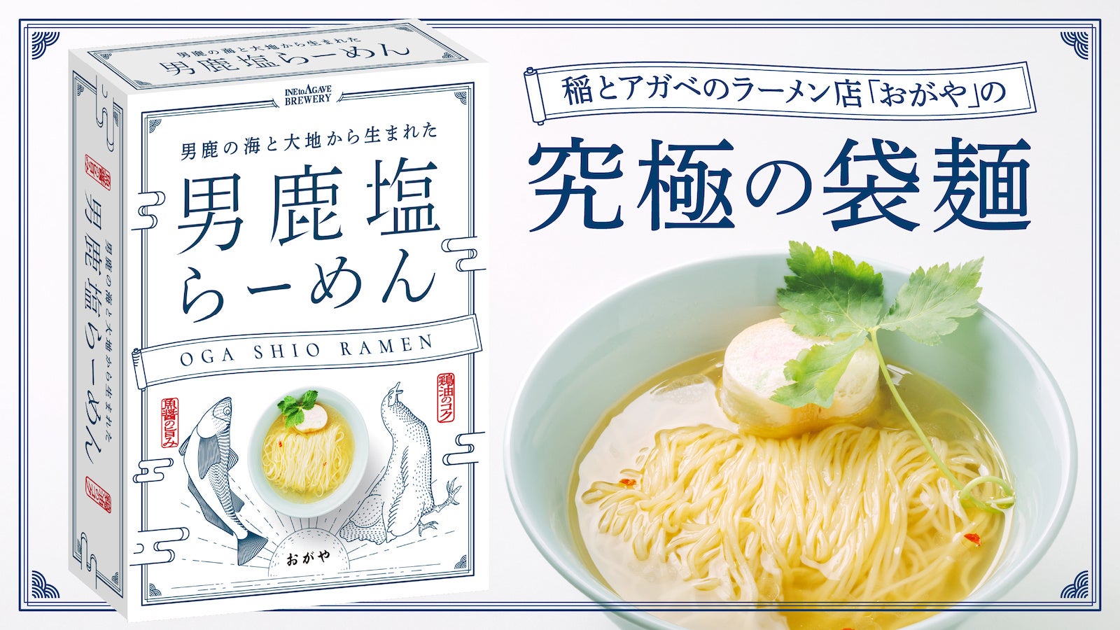 今年8月に力の源カンパニーさま監修のもと、男鹿駅前でリリースしたおがやの「男鹿塩ラーメン」。大変ありがたいことに多くの方にご愛顧いただきまして、男鹿の地に新たな賑わいを創出することにつながりました。我々稲とアガベが男鹿の地で創業開始した2年前、朝から晩まで人通りのない醸造所前の通りを眺めながら、この場所に人通りを作るにはどうすれば良いか?と思案していたあの日々を思い返すと私自身大変感慨深いものがあります。この度そんなおがやの男鹿塩ラーメンが袋麺として登場いたします。開発は、力の源カンパニーのグループ企業である、長野の渡辺製麺さまにご協力いただき、最高な出来栄えで「おがや」を知っている方も、知らない方も満足いただけるラーメンに仕上がりました。