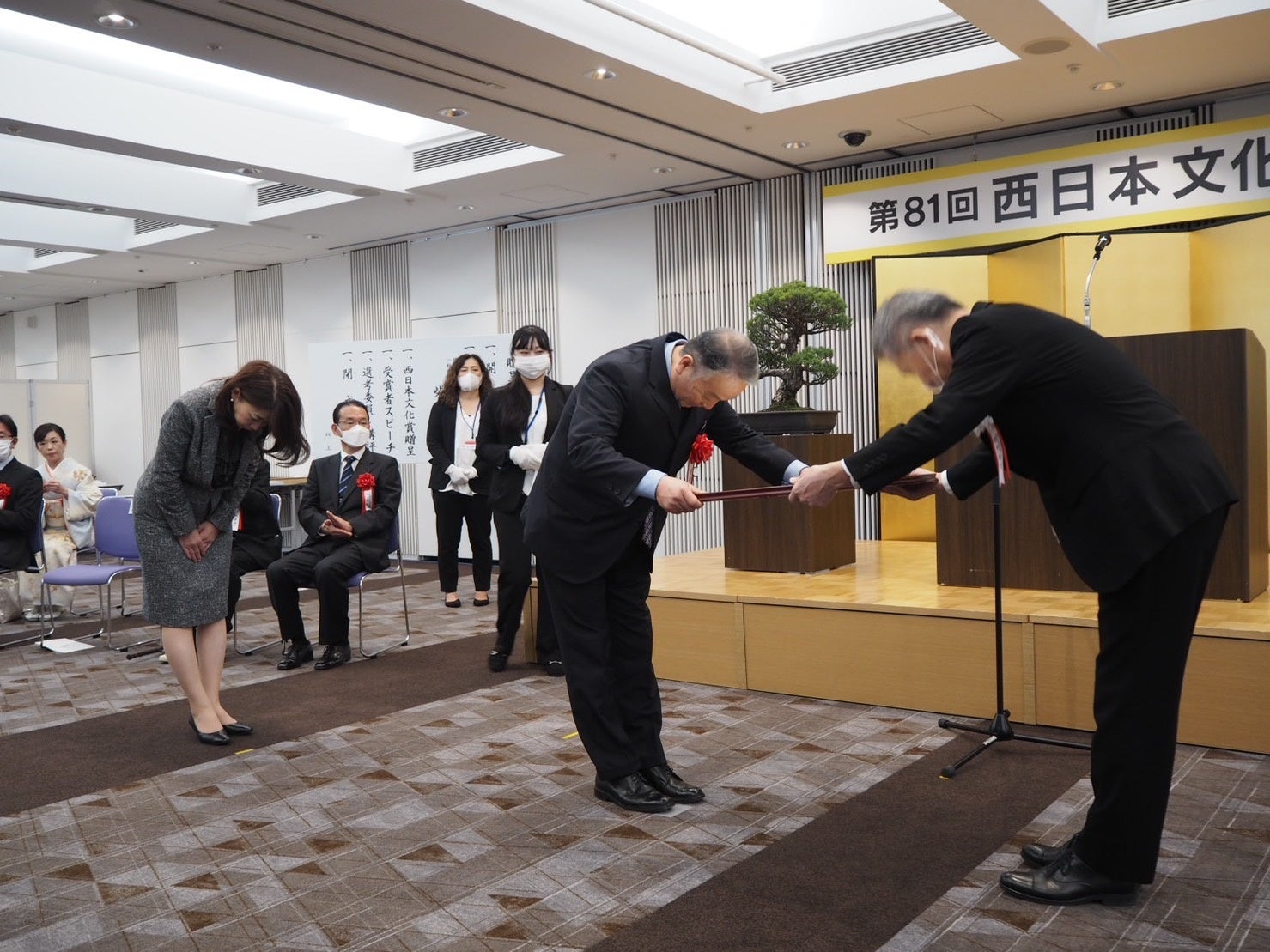 認定NPO法人抱樸が第81回西日本文化賞(社会文化部門)を受賞し、贈呈式が2022年11月3日(木・祝)の文化の日に、福岡市中央区天神のエルガーラホールにおいて執り行われました。