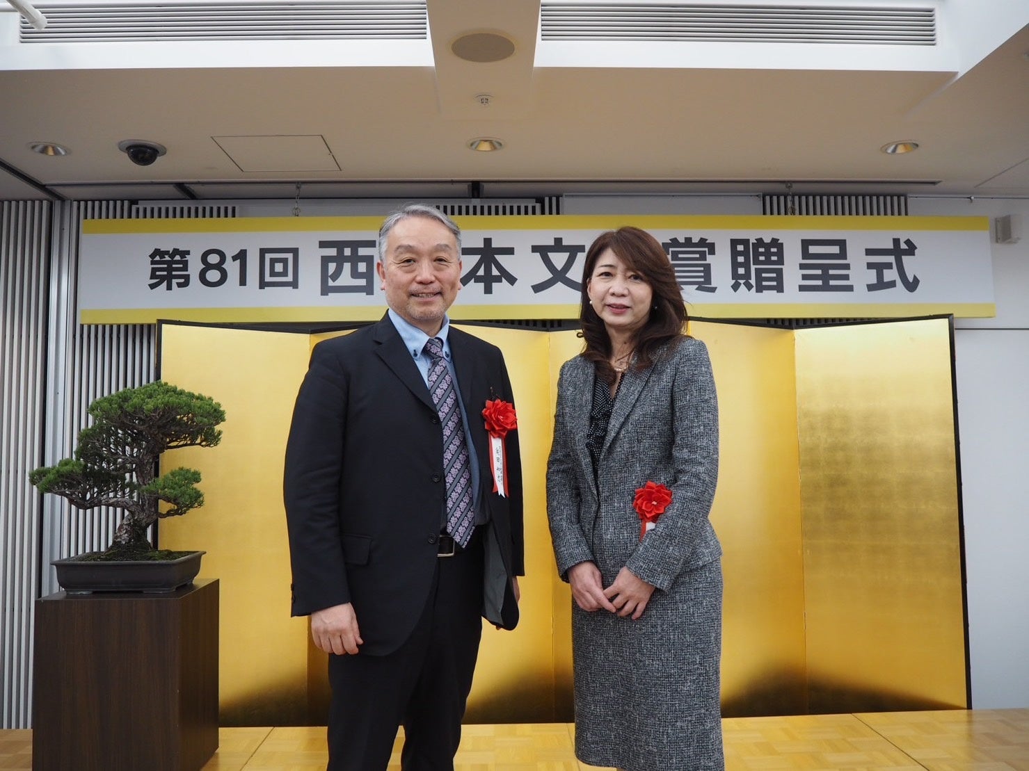 贈呈式には理事長の奥田知志と妻でありボランティア部の部長を務める奥田伴子が出席し、西日本新聞文化財団の柴田理事長から表彰状を贈呈されました。