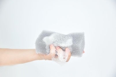 通常のサンサンスポンジに比べてさらに弾力性がありつつ、洗いたい部分にしなやかにフィットします。