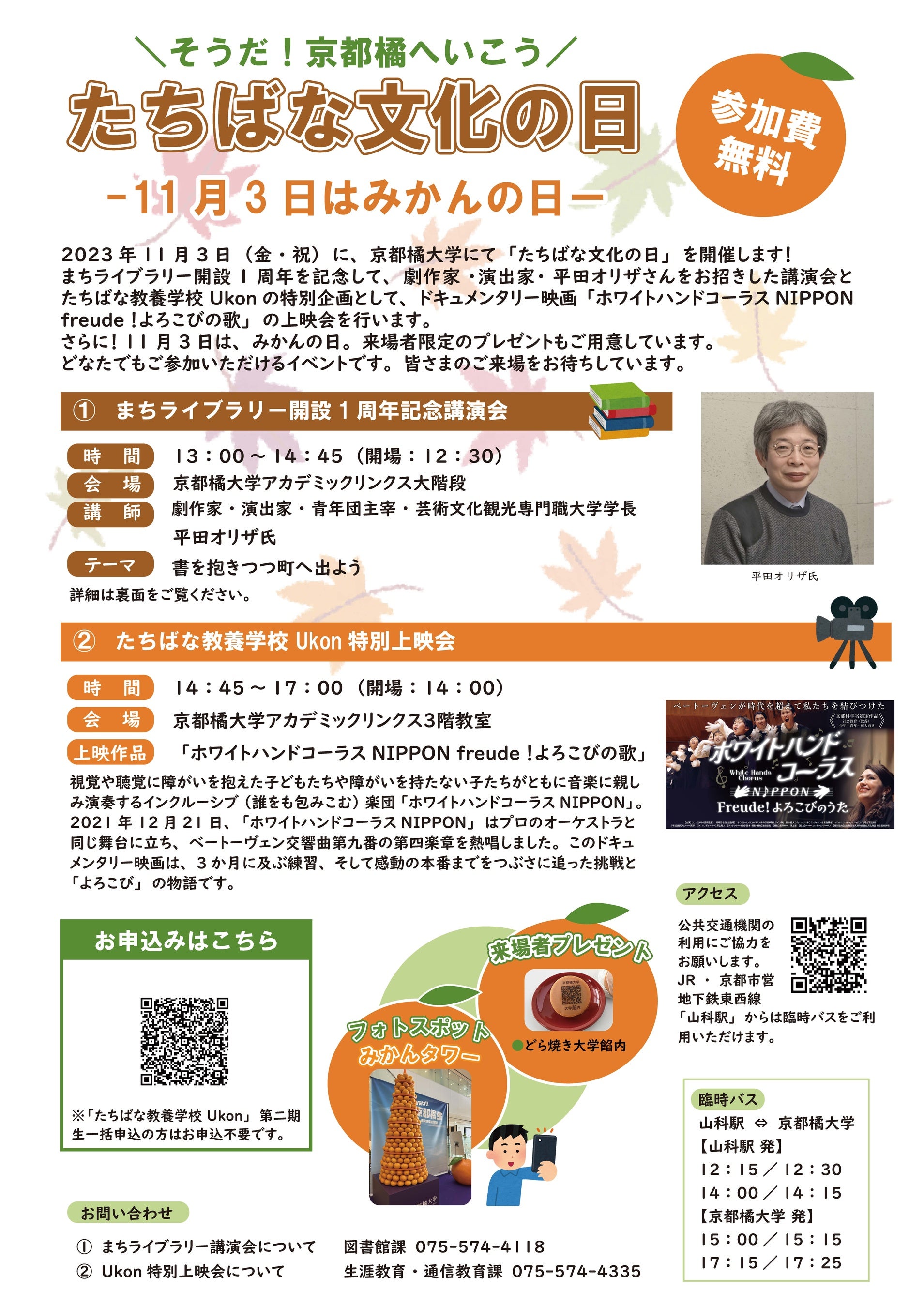 【京都橘大学】11月3日(金・祝)「たちばな文化の日」開催