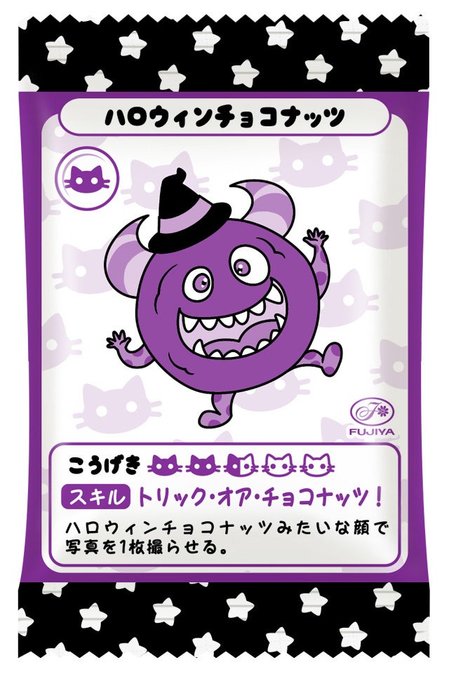・個包装にはユニークでかわいいモンスターをデザイン(全10種)し、「ハロウィンクイズ」、「モンスター対戦ゲーム」の2つの遊びができる