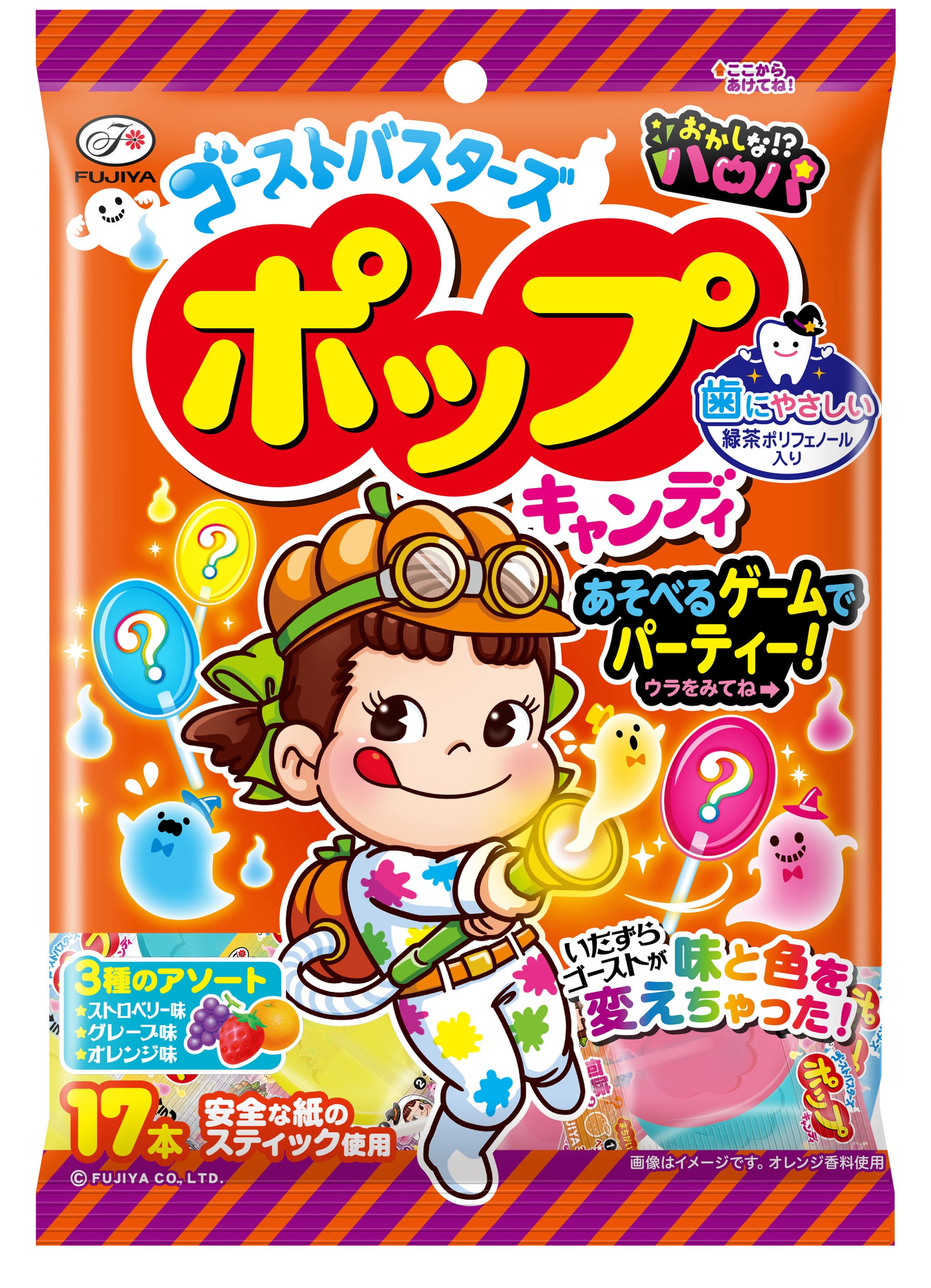 ・パッケージ表面にはゴーストバスターの仮装をしたペコちゃん、裏面にはモンスターをデザイン(全3種)