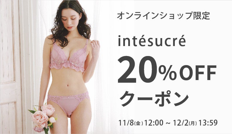 ブランド「アンテシュクレ」のブラジャーやショーツやランジェリーなど、7,700円(税込み)以上のご購入で20%OFFになります。