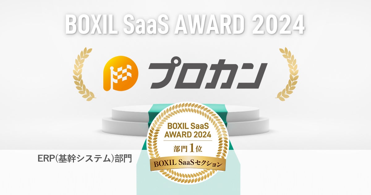 今回「BOXIL SaaS AWARD 2024」で「プロカン」が受賞したBOXIL SaaSセクションのERP部門1位は、2023年中に「BOXIL SaaS」上へ新たに投稿された口コミ評価の総得点が、各部門でもっとも高いサービスに対して付与されるものです。