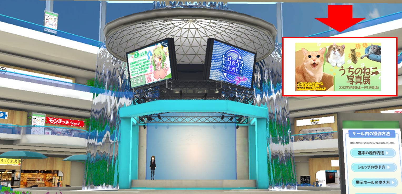 ④モール内に入り、右上「うちのねこ写真展」ポスター、または、右の「フロアマップ」をクリックした後に「うちのねこ写真展」をクリック