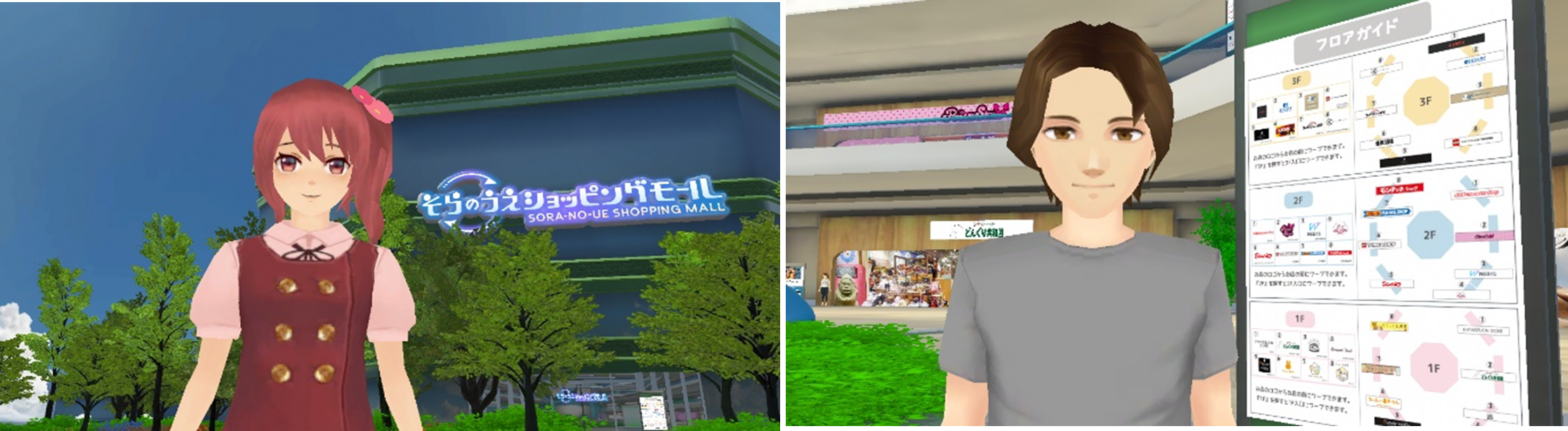 そらのうえショッピングモールとは、ベネリックデジタルエンターテインメント株式会社(本社:東京都千代田区、代表取締役社長:高橋晃広)が、monoAItechnology 株式会社(本社:兵庫県神戸市、代表取締役社長:本城 嘉太郎、モノアイテクノロジー)の開発・運営するバーチャル空間プラットフォーム「XR CLOUD(エックスアールクラウド)」に4月に展開したメタバースの商業施設です。「ジブリがいっぱい どんぐり共和国」、「ウルトラマンワールド M78」、「トミカショップ/プラレールショップ」、「サンリオショップ」など人気のキャラクターショップが集結したキャラクター好きにはたまらない、夢のようなショッピングモールです。