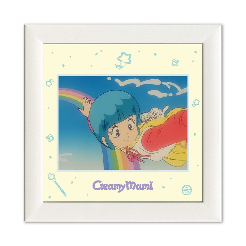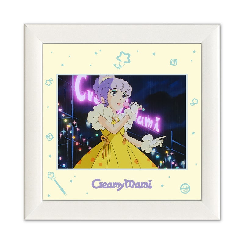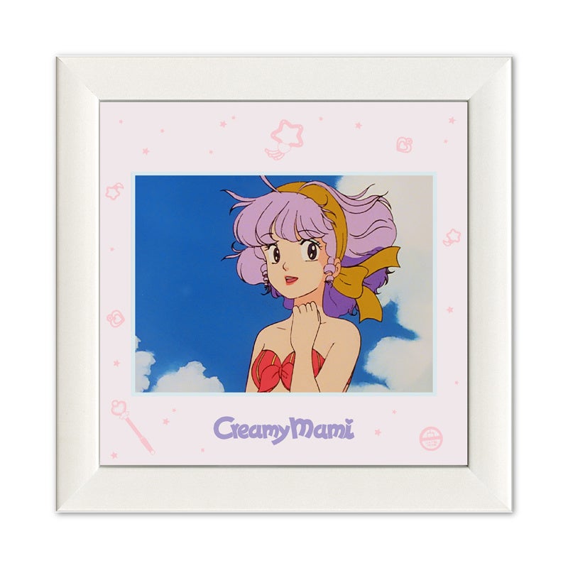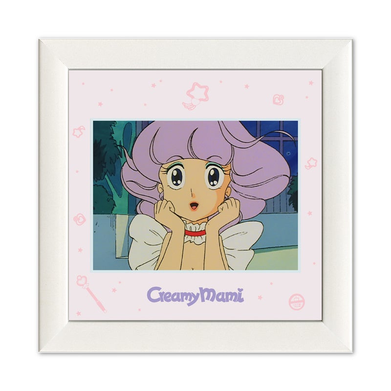 テレビアニメの人気イラストを用いたアクリルアート。ベースにキラキラ輝くラメ仕様のアクリルを使用することで、クリィミーマミのポップなおしゃれさを表現しました。