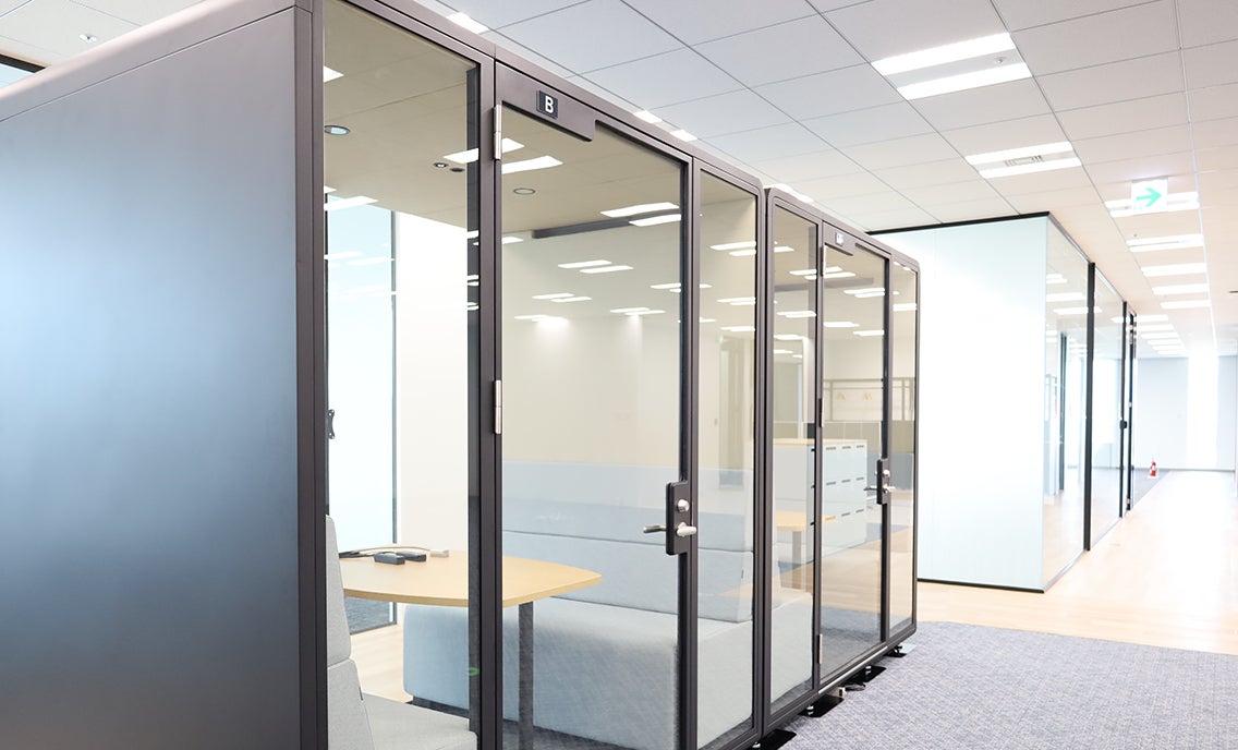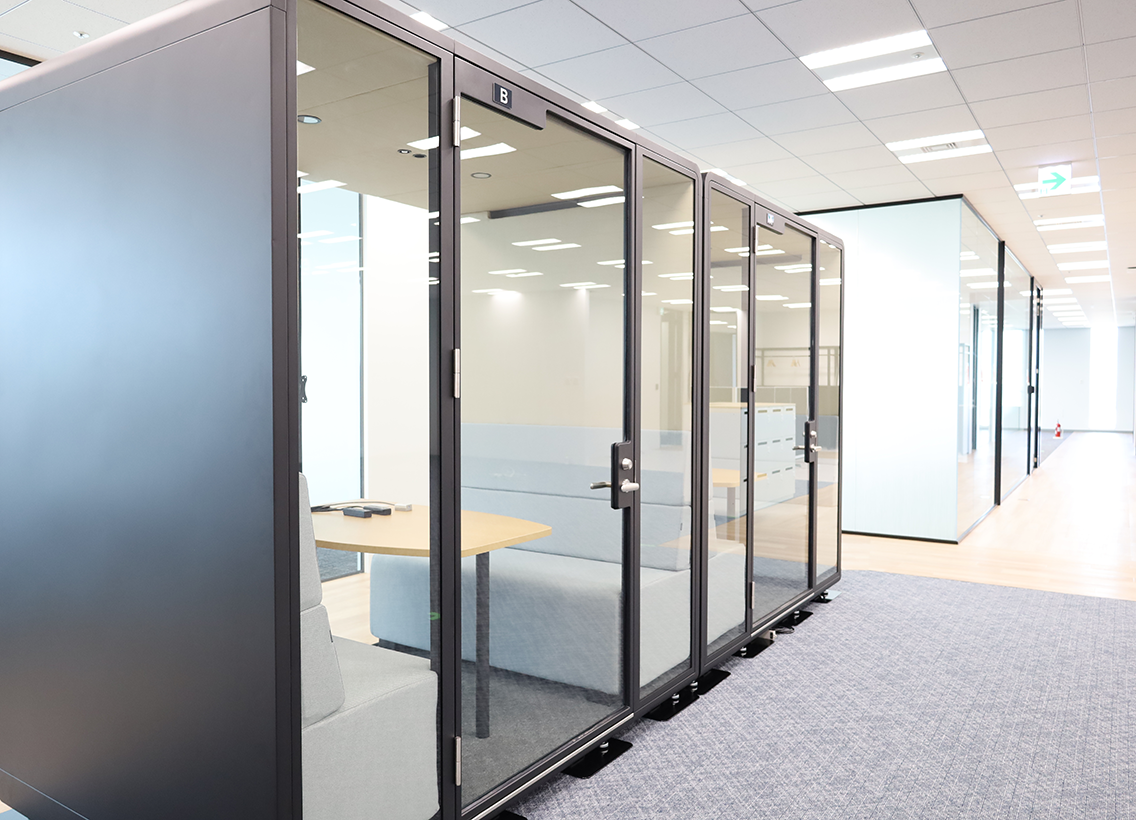 新オフィスでは「働く場所から、働きたくなる場所へ。」をコンセプトにフリーアドレスエリアを拡張しオープンスペースを新設しました。個室型のブースをはじめとした、様々な形式の会議室を拡充することで、目的に応じて使い分け、部門間の垣根を超えたコミュニケーションの取りやすい空間をつくりました。社員・採用応募者にとって魅力的な会社を目指します。