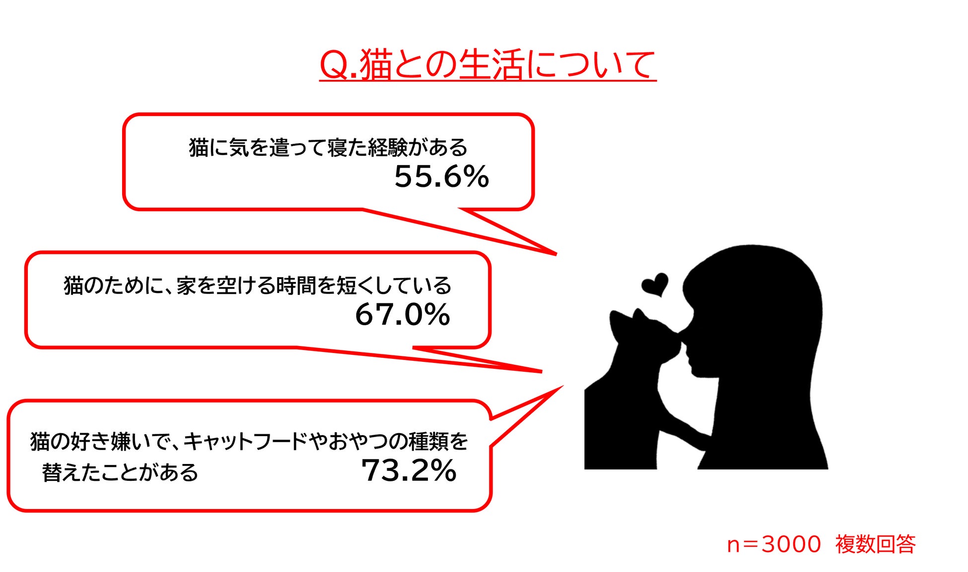 ✓猫を飼ってから20代の男女の2人に1人が「インドア派になった」と答えるなど