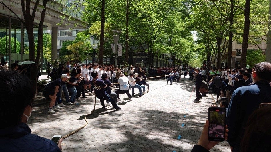 開催地の丸の内・有楽町エリアでは、 平日のお昼(12:00~13:00)、地域で働く方々が参加するラジオ体操や、綱引き大会が開催されています。4/20(木)は、綱引き大会の決勝戦と、優勝チームと帝京ラグビー部の参加するエキシビジョンマッチも開催されます。