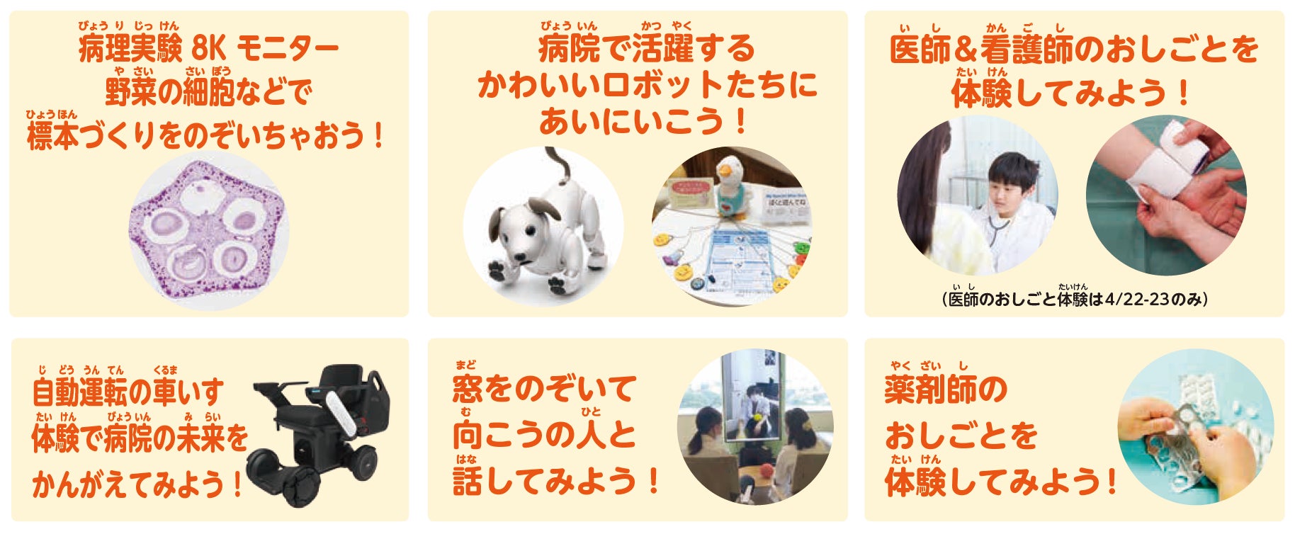 こどもたちと学ぶ健康と医学の関係。健康の基本を裏付け、支える医学、医療技術の最先端を、実際に体験してもらうことで、健康を改めて考え、医学・医療との付き合い方を知ることができる。お子様が医学、医療を楽しみながら体験し、親御様と一緒に体験することで、きっと新しい発見があります。