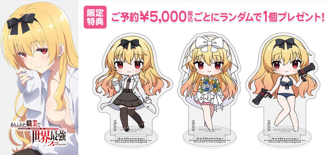 「ありふれた職業で世界最強」対象商品のご予約¥5,000(税込)ごとにミニアクリルスタンド(約60mm/イラスト:ちーと)がランダムで1個もらえる!