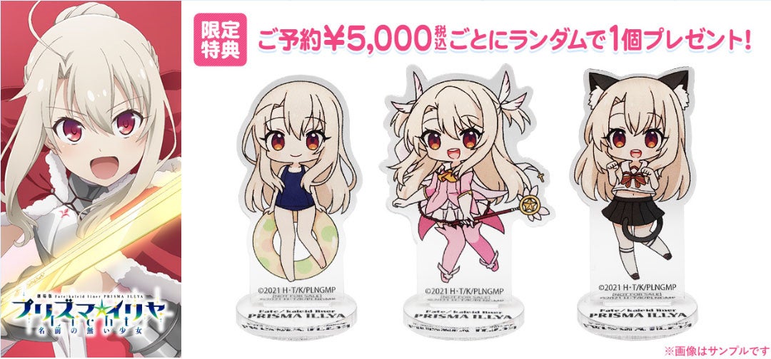 「Fate/kaleid liner プリズマ☆イリヤ」シリーズ対象商品のご予約¥5,000(税込)ごとにミニアクリルスタンド(約60mm/イラスト:ちーと)がランダムで1個もらえる!