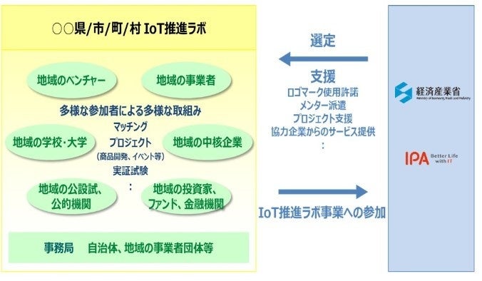 横浜市は「I▫TOP横浜」の取組を通じて、IoTやAIといった先端技術を用いた新規ビジネス創出に取り組んでいます。また、経済産業省と(独)情報処理推進機構(以下、IPA)では、地域におけるIoTプロジェクト創出のための取組として「地方版IoT推進ラボ」の選定・支援を行っており、横浜市では「I▫TOP横浜」創設当初から、同ラボに参画しています。