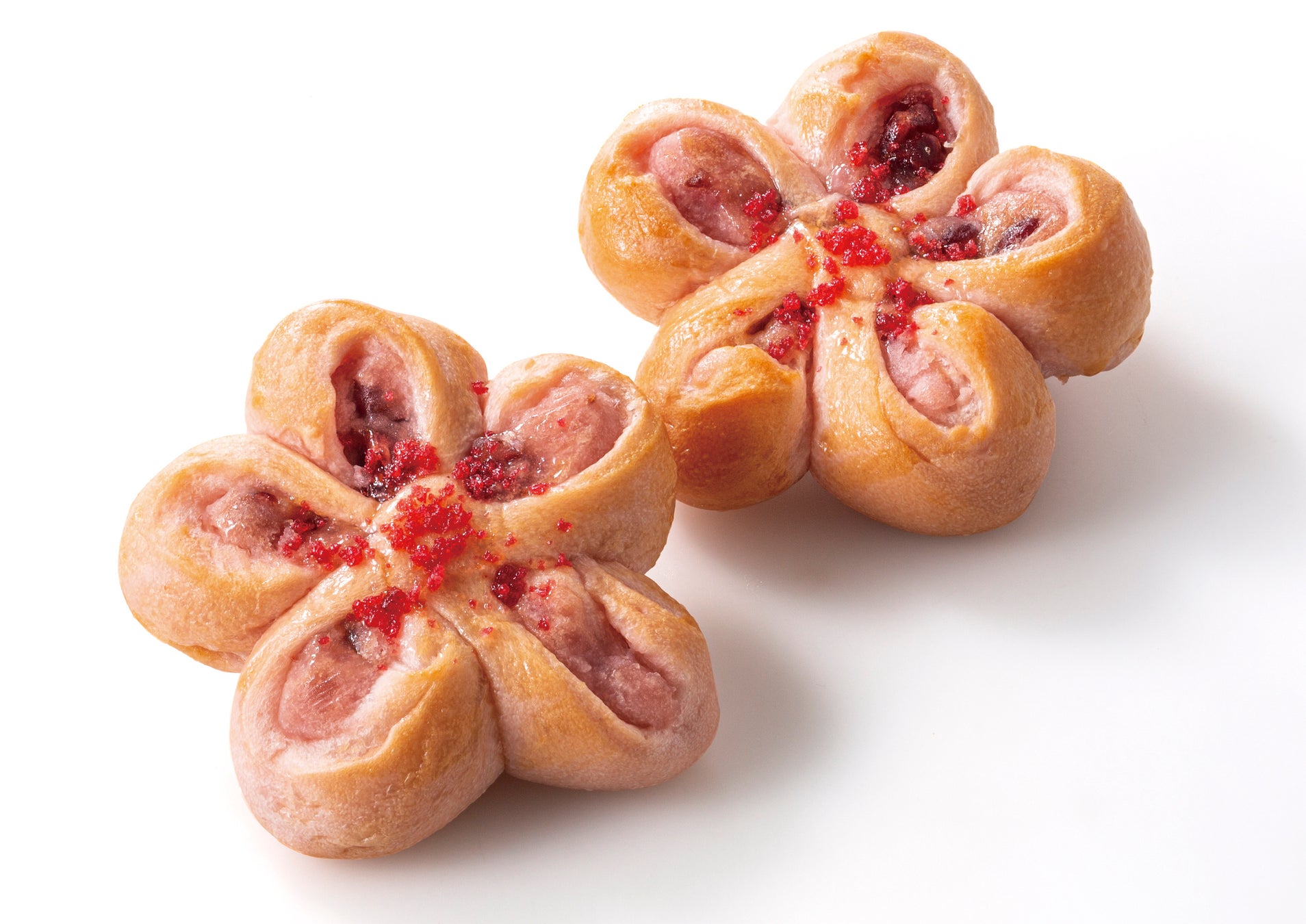 ドライクランベリーと合わせた白あんを包み、花の形に見立てて焼きました。