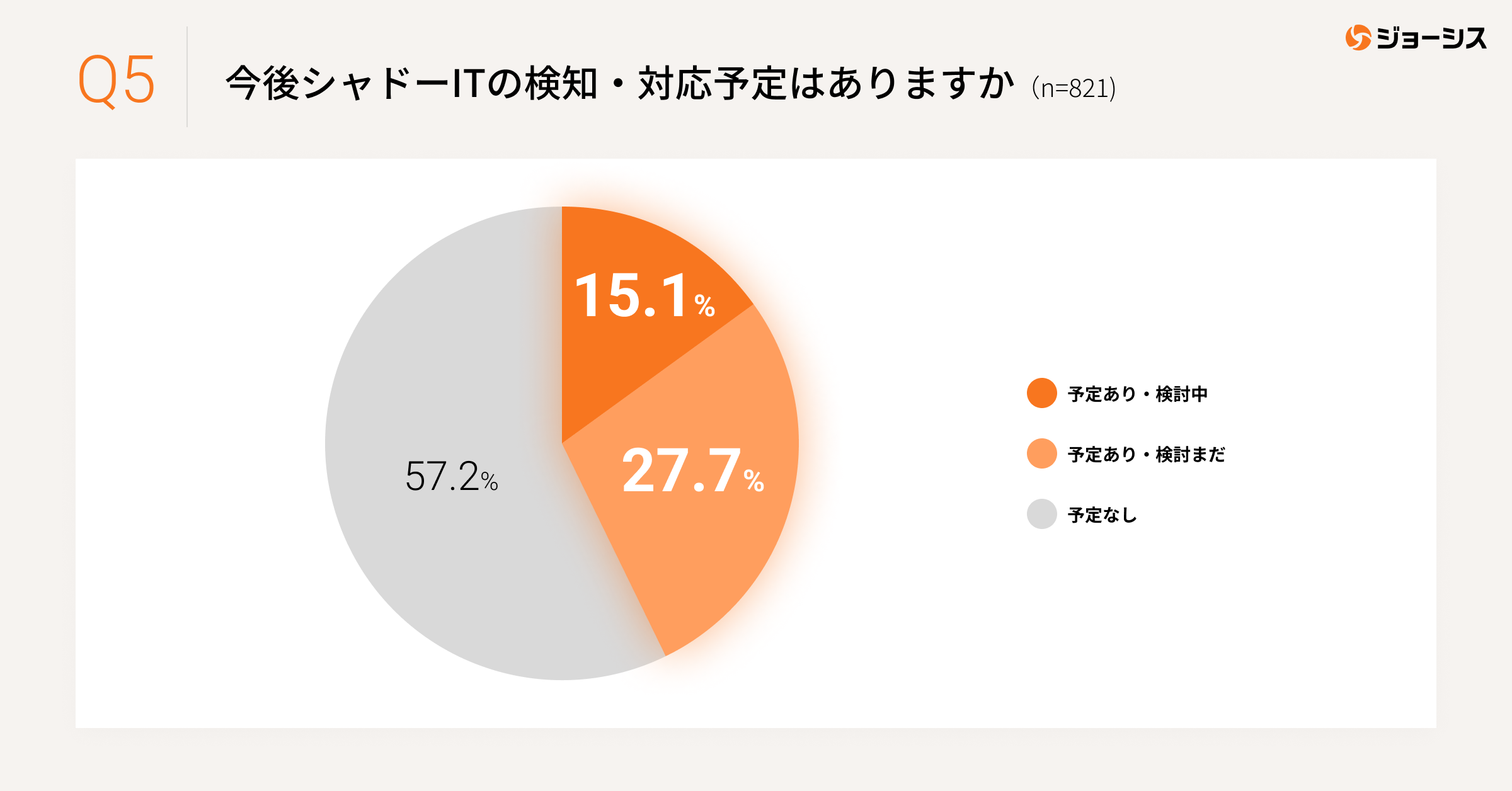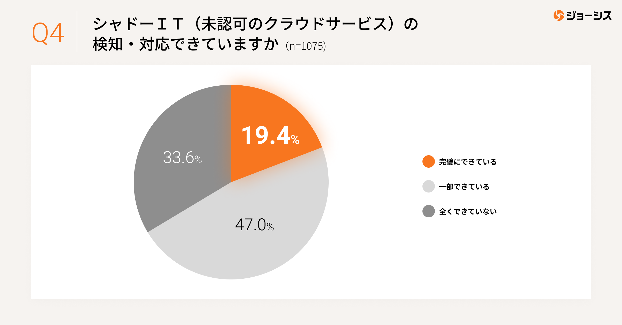 特に「シャドーIT」の問題は情報セキュリティガバナンス確立の障壁であり、大きなリスク要因ですが、対策を講じている企業は非常にわずかで、8割以上の企業が対策できていないと回答しています。