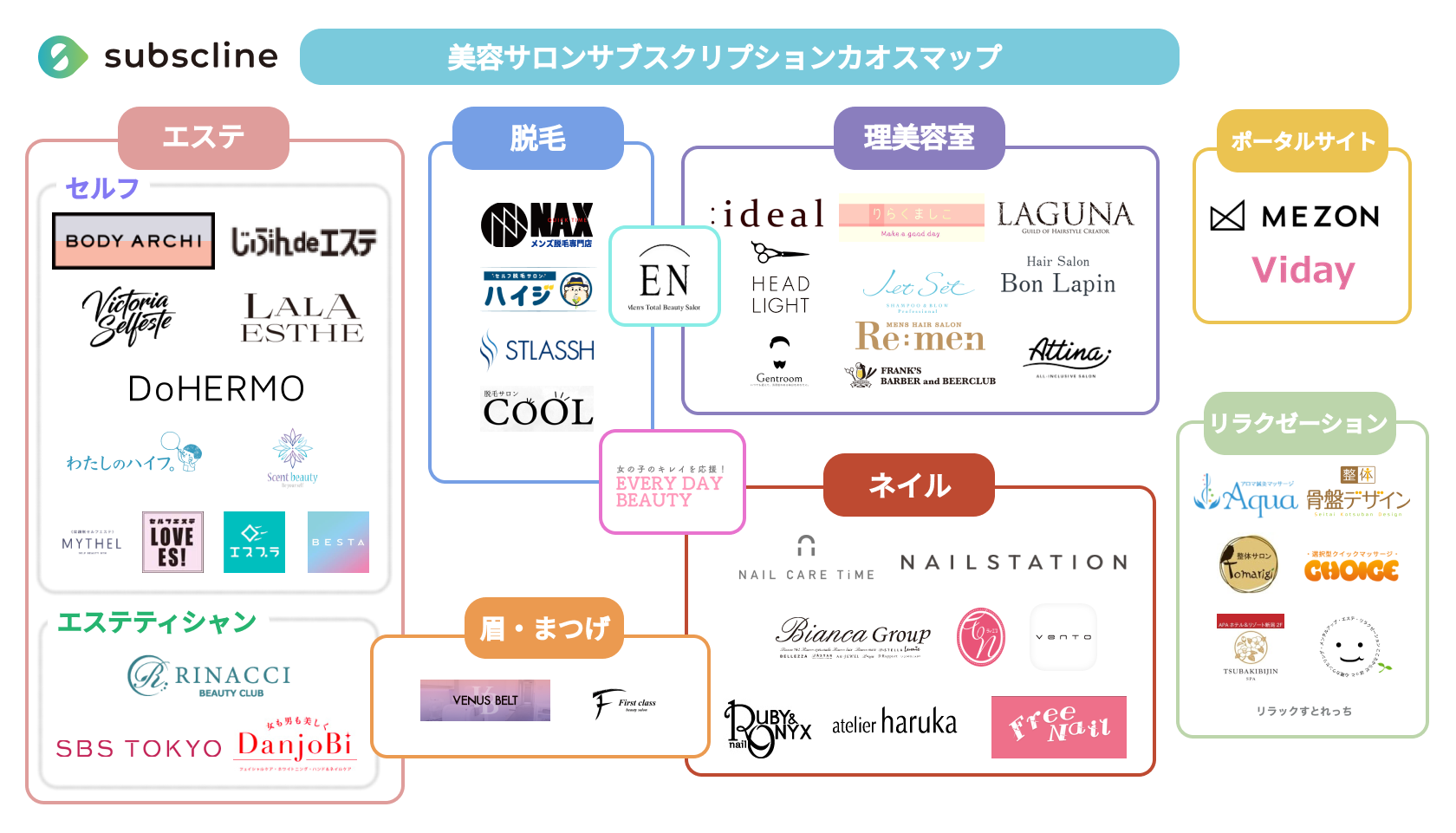 2022年、日本の美容サロンでサブスクの拡大が進む。全47の美容サロンをカテゴリー別にカオスマップ化!