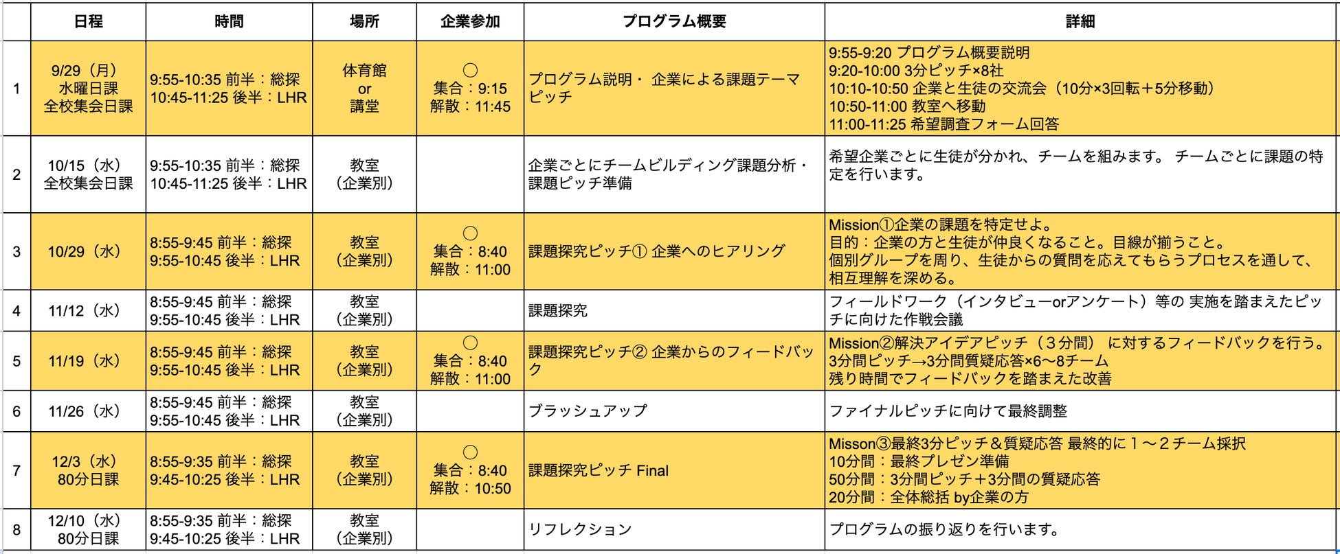 探究の過程:9月のテーマ提示から最終ピッチへ