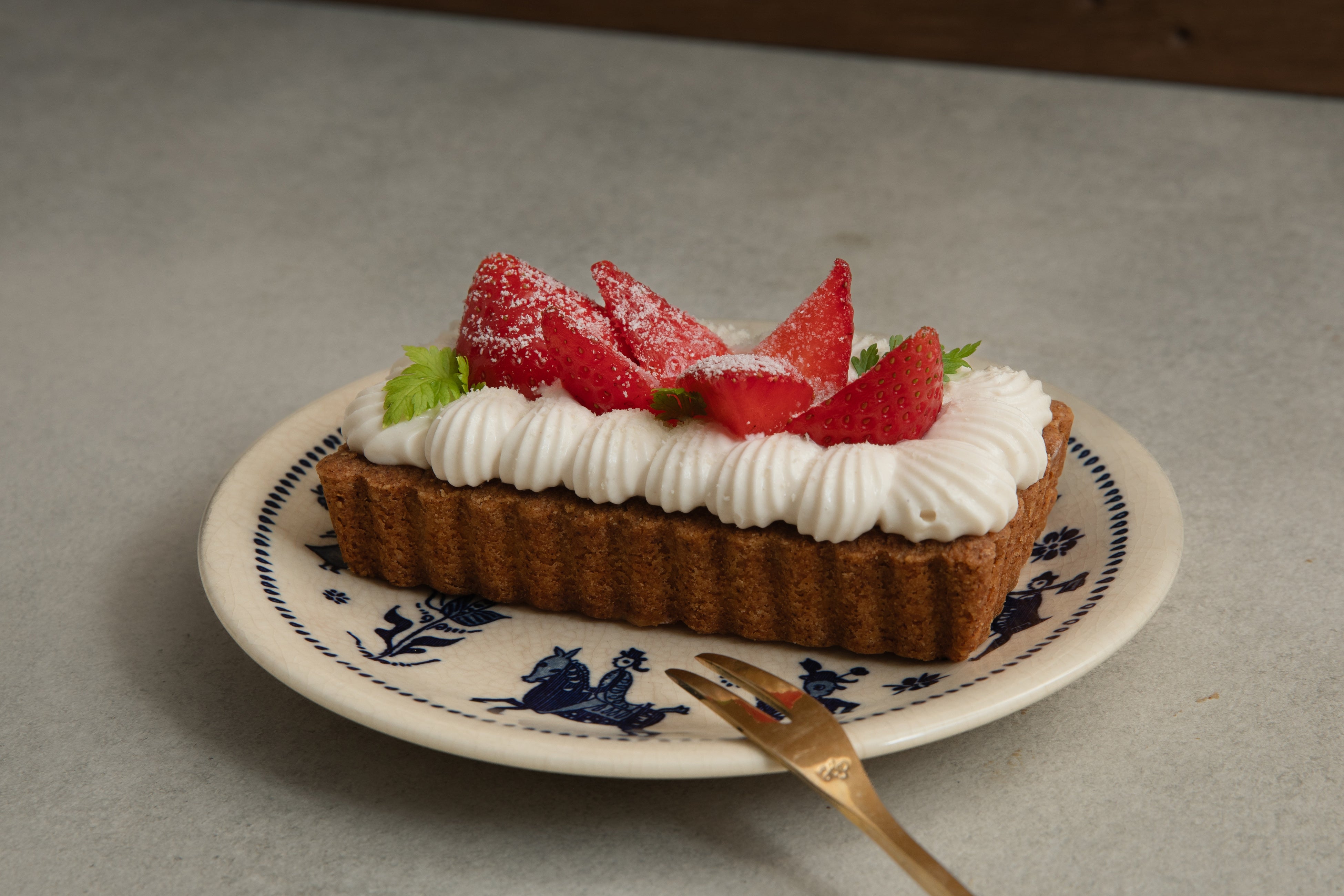 お子様に人気のタルトが、乳・卵・小麦・白砂糖不使用でお召し上がりいただけます。サクサクのタルト生地に、プラントベースのクレームダマンドと自家製の国産いちごジャムを流し込んで焼き上げ、完熟いちごと特製カスタードクリーム、豆乳ホイップで仕上げました。