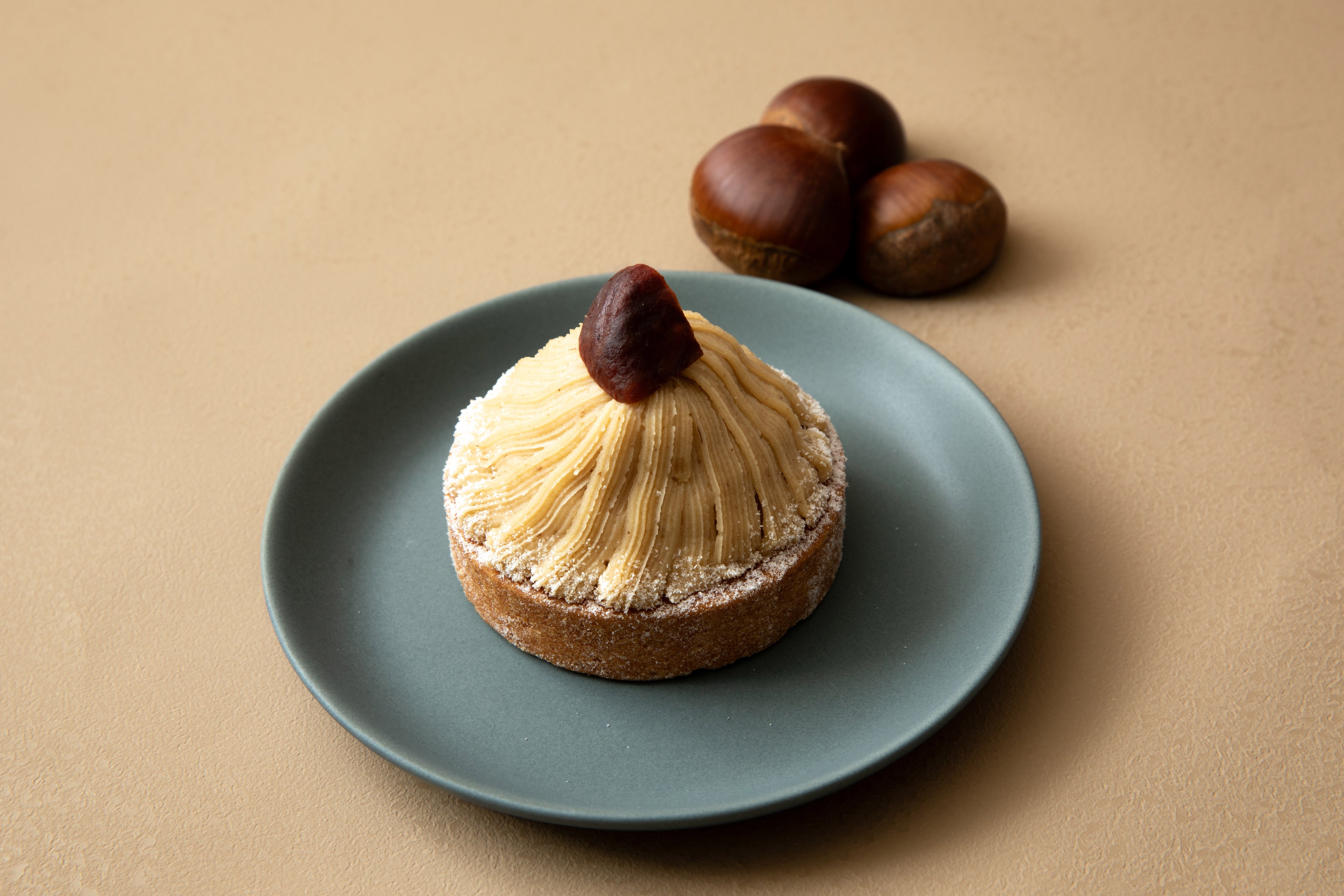 愛媛の名産「中山栗」の2L〜3Lサイズを贅沢に使用。栗の繊細な風味とラムの香りを生かしたプラントベースのモンブランクリームの中に、自家製の渋皮煮を大粒のまま忍ばせました。米粉タルト台に敷いたカカオのほろ苦い