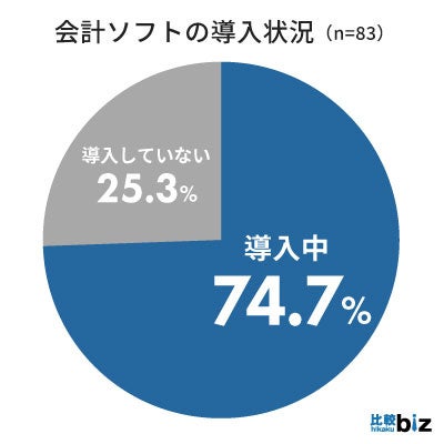 | 会計ソフトの導入状況 (n=83) | 「会計ソフトを導入している」 74.7% 「会計ソフトを導入していない」 25.3% |