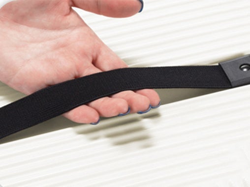 ●スーツケースのキャリーハンドルに固定する高弾性ストラップ装備