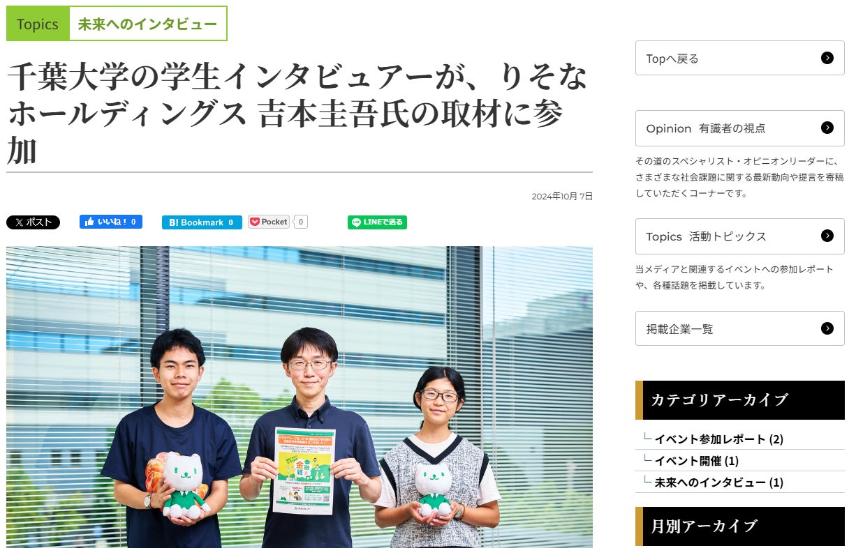 千葉大学の学生インタビュアーが、りそなホールディングス 吉本圭吾氏の取材に参加 - Topics 活動トピックス | Perspectives (braincenter.co.jp)